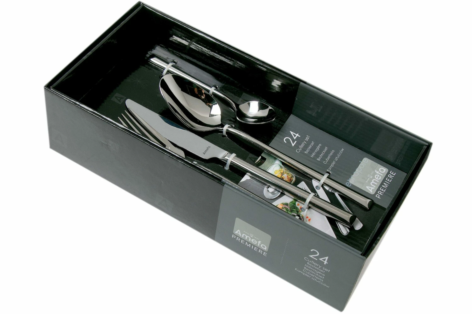 El Amefa Metropole es un modelo de la gama Premiere. Esta gama combina calidad con diseños exclusivos y funcionalidad. El modelo Metropole es un modelo de líneas largas y delgadas con un mango inclinado. El diseño se basa en la arquitectura urbana contemporánea y tiene un aspecto lujoso y moderno. Los cubiertos de esta colección están fabricados en acero al cromo-níquel 18/10, tienen un acabado muy brillante y son aptos para el lavavajillas.