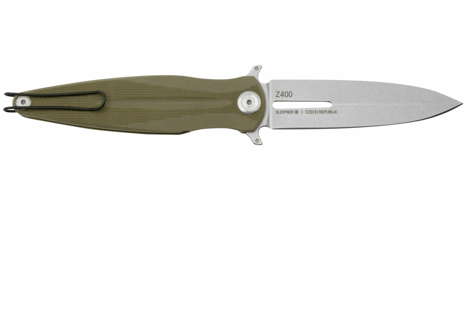 La ANV Z400 es una elegante navaja, fabricada en la República Checa por Acta Non Verba Knives. La Z400 es una daga moderna. Sin embargo, este cuchillo tiene únicamente un filo. Lo que significa que es legal poseerlo. La incrustación de Super-LumiNova suiza en las guardas es un bonito detalle. Este material se ilumina en la oscuridad y se utiliza a menudo para las esferas de los relojes de alta calidad.