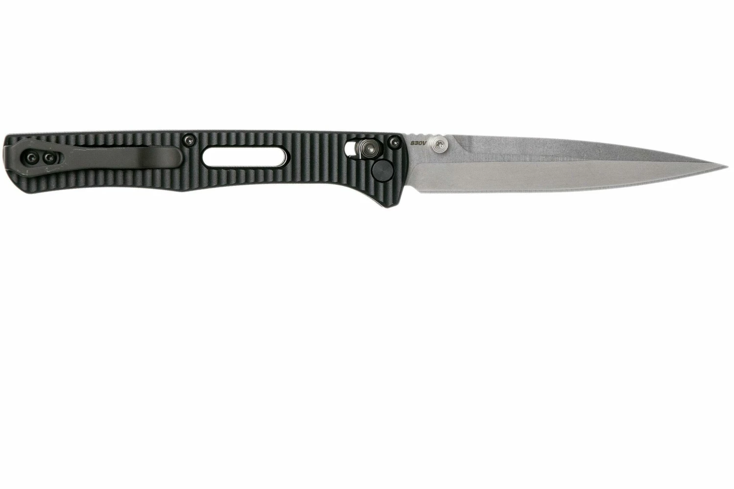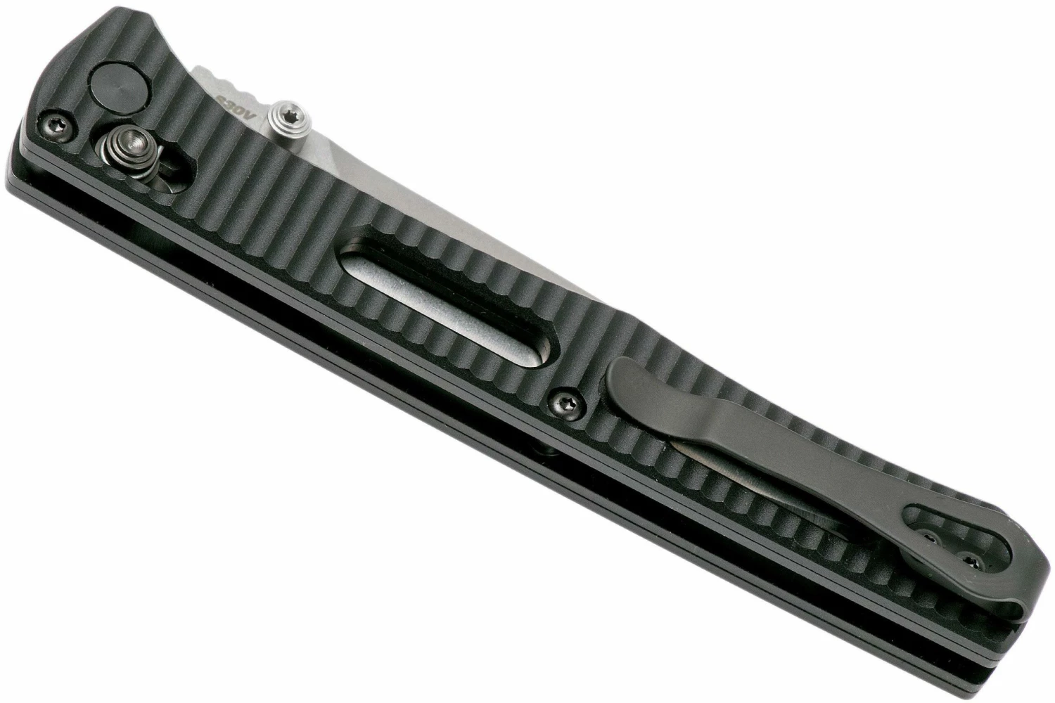 La Benchmade Fact es una navaja delgada y minimalista. Al ver su tamaño es difícil imaginar que este cuchillo solo pesa 92 gramos. El mango está hecho de aluminio anodizado negro. El patrón que se ha grabado en el mango garantiza que tengas un buen control del cuchillo. Por eso, a pesar de que el mango es muy delgado tendrás suficiente agarre.