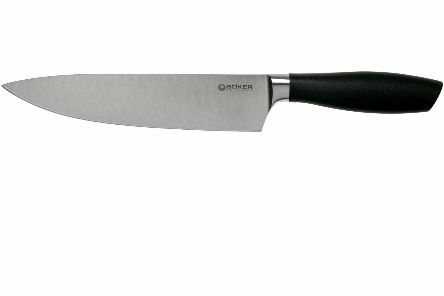 El cuchillo de chef Böker Core Professional 20 cm – BO130840 es un práctico y elegante cuchillo de chef pequeño con una longitud de hoja de 20 cm. Este cuchillo de cocina está preparado para realizar cualquier tarea en la cocina y no necesitará ser reemplazado rápidamente. Debido a la solidez de la hoja y al filo de la misma, básicamente no tienes que aplicar ninguna presión. Cortarás todos los ingredientes casi automáticamente.