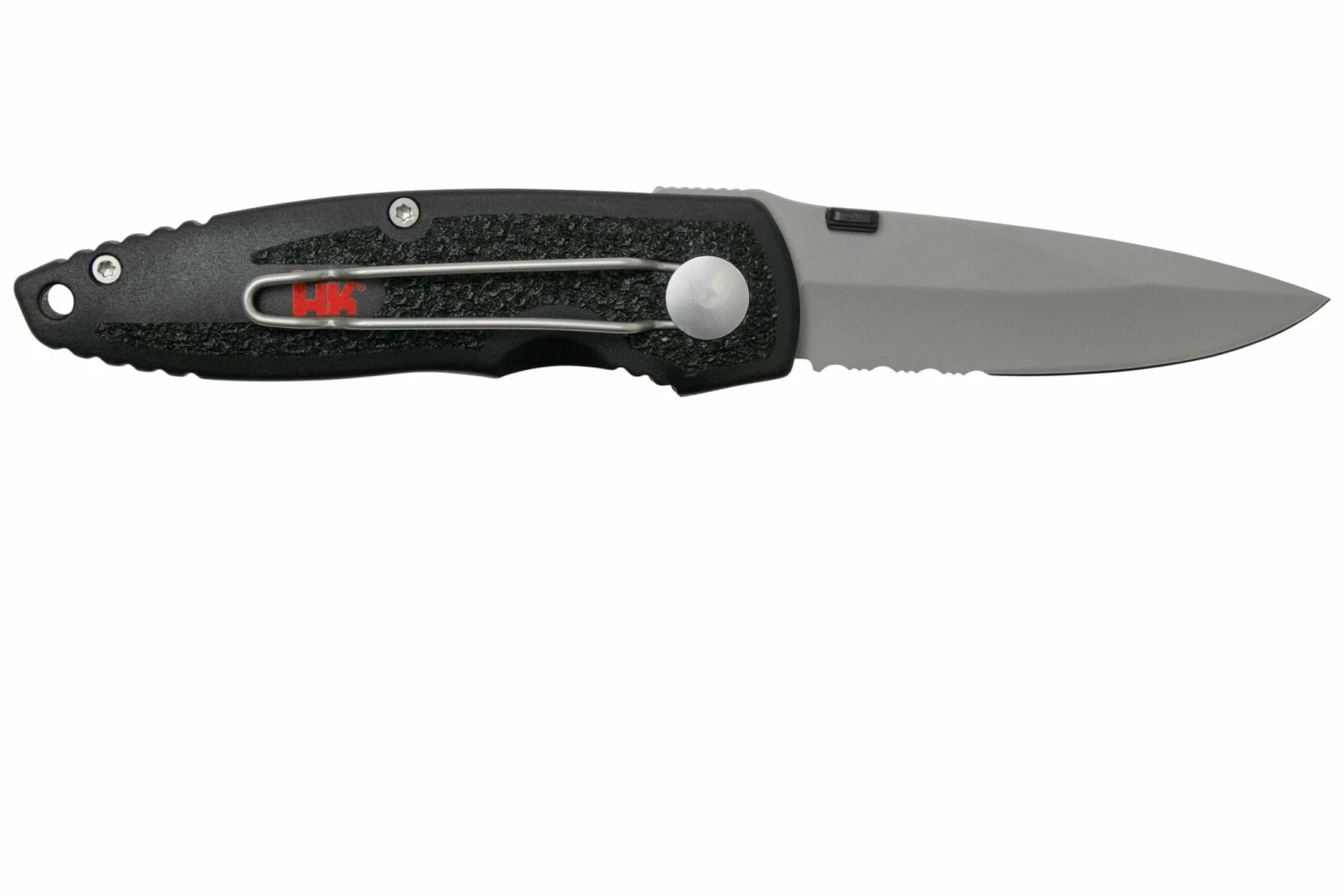 La Böker Heckler & Koch Alpha 110046 es una navaja táctica de bolsillo con un diseño robusto y práctico. Este cuchillo es una colaboración entre Böker y Heckler & Koch. El mango está hecho del mismo material y diseño que Heckler & Koch también utiliza para los mangos de sus otros productos. El cuchillo se abre con un perno de pulgar desmontable. El diseño de este perno de pulgar es similar al botón de liberación del cargador de una H&K USP. Estas opciones de diseño no sólo son geniales, sino también muy prácticas. Por lo tanto, este cuchillo es fantástico como cuchillo EDC para cualquier persona que aprecie la calidad.