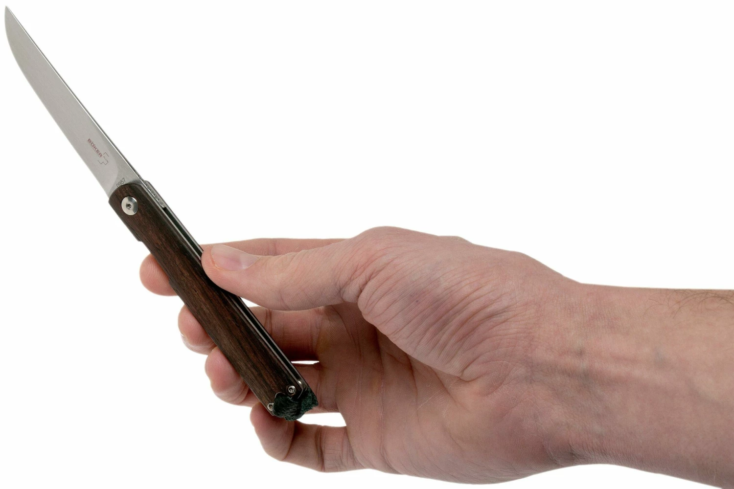 El Böker Plus Nori es un notable y elegante cuchillo de caballero. Fue diseñado por el diseñador japonés Kansei Matsuno. Sus diseños son increíblemente populares por su elegancia. Todos ellos son notables. El Nori no es una excepción. Gracias a su peso extremadamente bajo y a su perfil delgado, casi desaparece en el bolsillo. Un cuchillo de caballero realmente elegante, para cortar un trozo de carne o pelar una manzana.