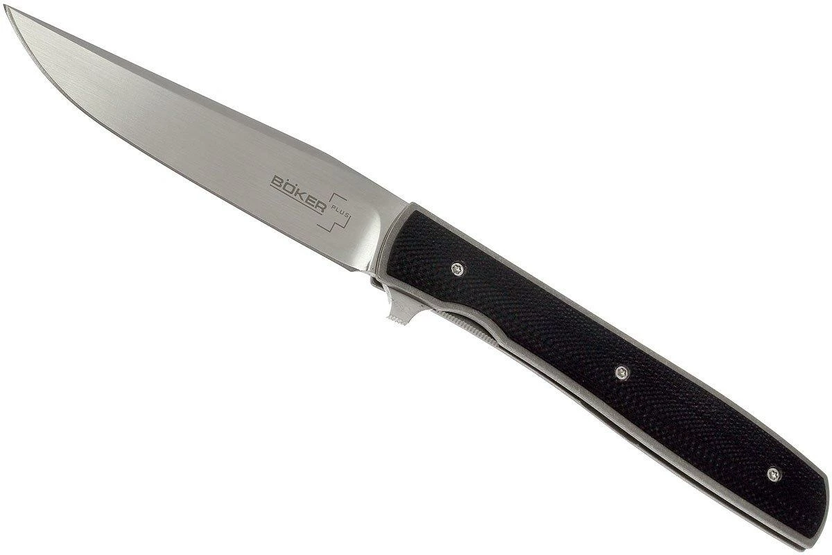 La Böker Plus Urban Trapper es una navaja muy fina y elegante, diseñada por Brad Zinker. Su pequeño tamaño y su marco de titanio la hacen muy ligera. El flipper permite que se abra suavemente con una sola mano. La hoja de acero VG10 está muy bien redondeada en el lomo. Un bloqueo liner-lock mantiene el cuchillo bloqueado en posición abierta. El cuchillo perfecto para caballeros.