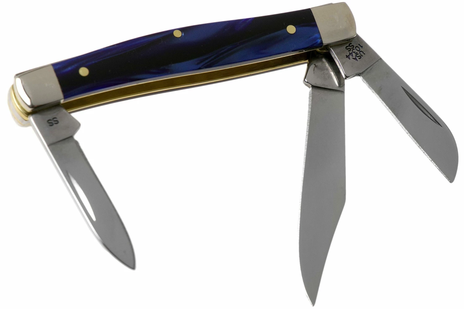 La Case Medium Stockman es un verdadero clásico en el mundo de las navajas. Este modelo es casi tan antiguo como toda la categoría de los Traditionals. Esta Case Stockman es una encarnación muy pura de este modelo clásico. Tiene tres hojas: una hoja clippoint como hoja principal, una hoja sheepsfoot de 3,9 cm y una hoja de pluma.