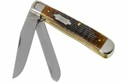 La Case Trapper es una navaja tradicional con la clásica forma de Trapper. Este es un patrón que tiene su origen entre los cazadores y los furtivos. Esta versión específica tiene dos hojas: una clásica clippoint y una tradicional speypoint. Ambas hojas pueden utilizarse para destripar la caza capturada. Cuando se abren, se mantienen en su sitio gracias a un slipjoint.