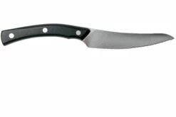 El cuchillo para carne Due Cigni Tuscany es un elegante cuchillo para carne para todos los amantes de la carne. Permite cortar fácilmente filetes u otros trozos de carne sin desgarrarlos. Esto se debe a su hoja suave y afilada. Además de que un cuchillo para carne con una hoja lisa corta muy bien, también es fácil de afilar si pierde algo de filo con el tiempo. La hoja está fabricada en acero inoxidable Nitro-B 4119. Se trata de un tipo de acero con un alto contenido en nitrógeno. Tiene una microestructura extremadamente fina y es muy resistente a la corrosión. Este tipo de acero también es fácil de afilar en casa, en caso de que pierda algo de filo con el tiempo.