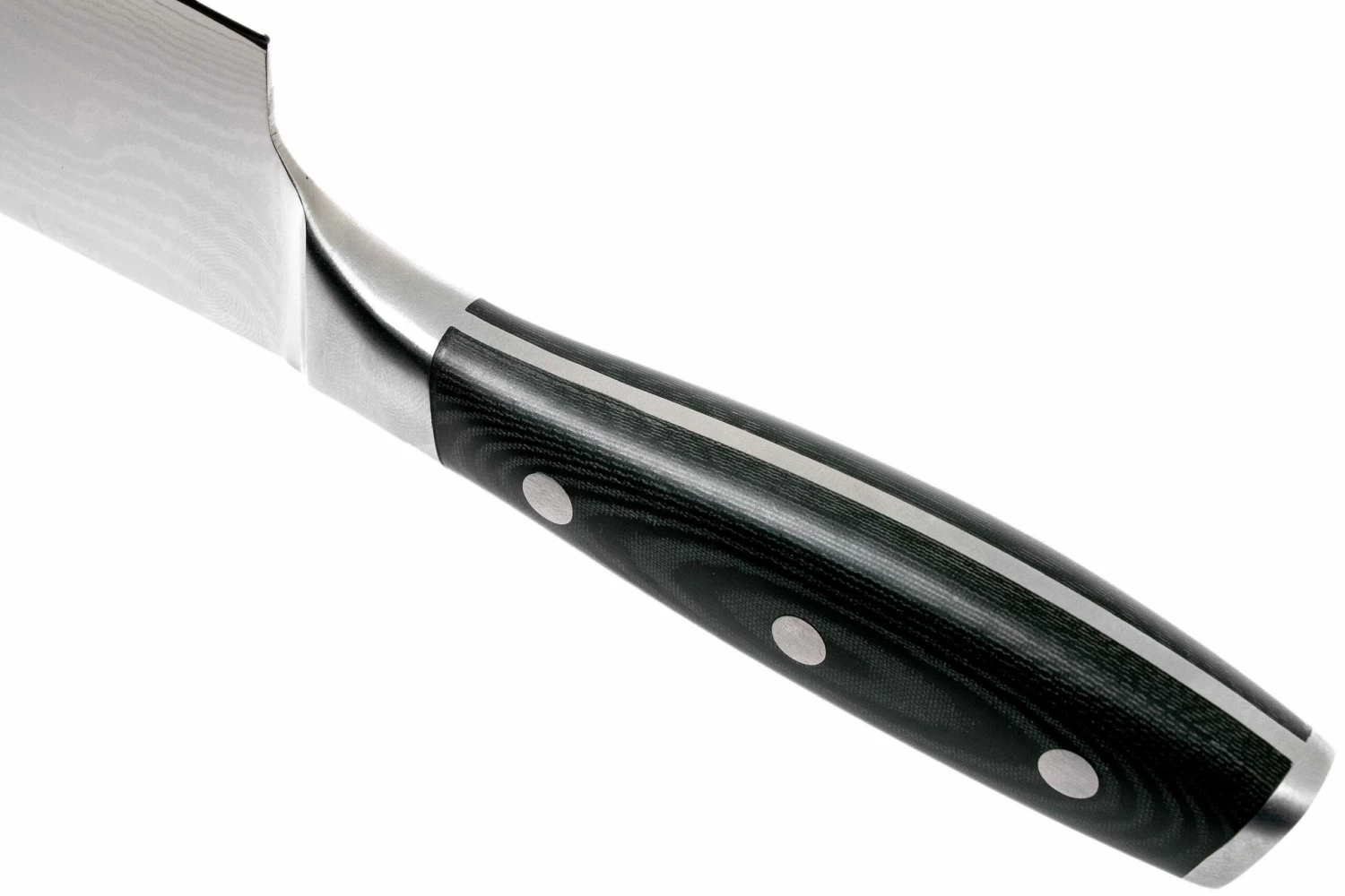 El nakiri Eden Classic Damast es un típico cuchillo japonés para verduras. La punta del filo está ligeramente redondeada para que sea posible cortar tiras perfectas de verduras. Aunque la forma pueda sugerirlo, no se trata de un hacha de carnicero. El acero es considerablemente más fino, por lo que el corte podría dañar seriamente la hoja.