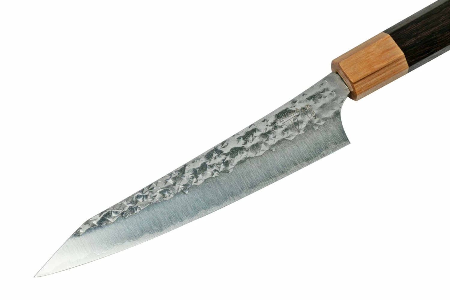 El Eden Takara Petty 15 cm es la versión japonesa de nuestro cuchillo puntilla europeo. El cuchillo perfecto para las tareas más pequeñas en la cocina. Es increíble trabajar con ellos y son un espectáculo para los ojos.