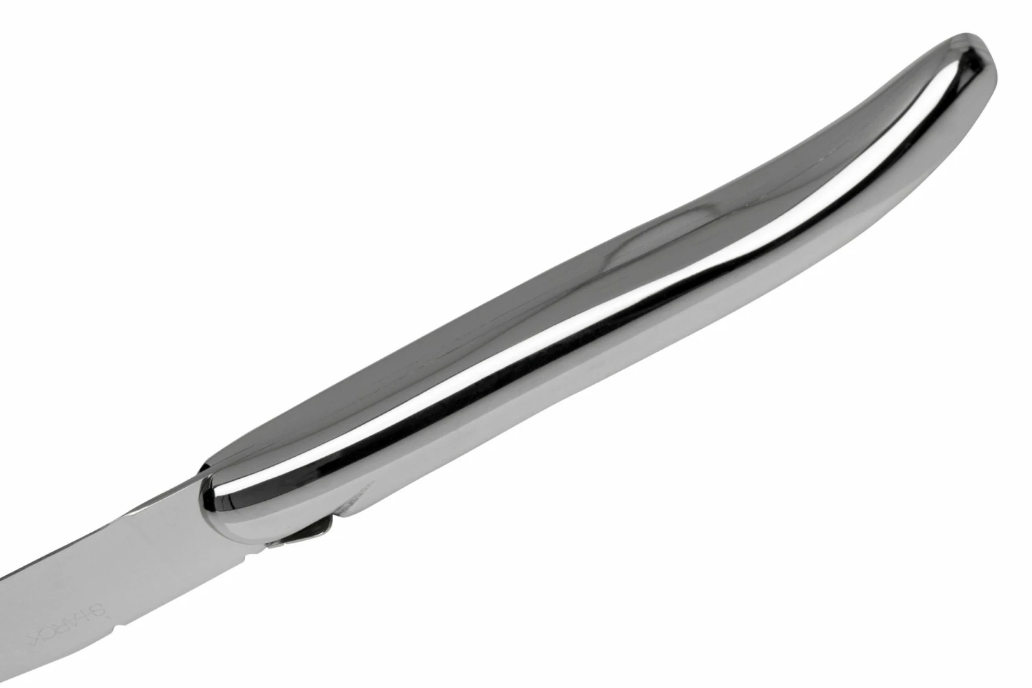 El Forge de Laguiole Philippe Starck Signature es un elegante juego de cuchillos para carne diseñado por Philippe Starck. Arquitecto y diseñador francés que también diseñó el edificio oficial de la fábrica Forge de Laguiole. Los cuchillos están hechos a mano de forma tradicional en Laguiole, Francia.