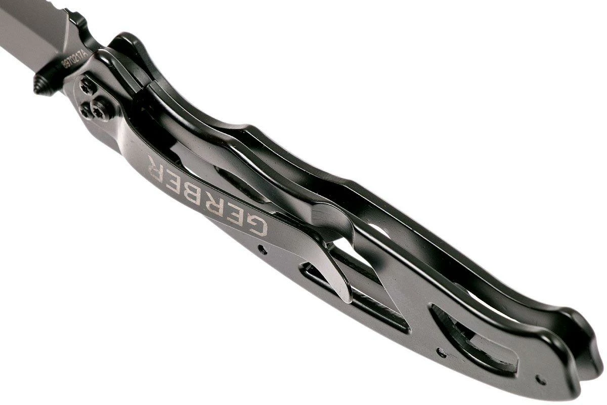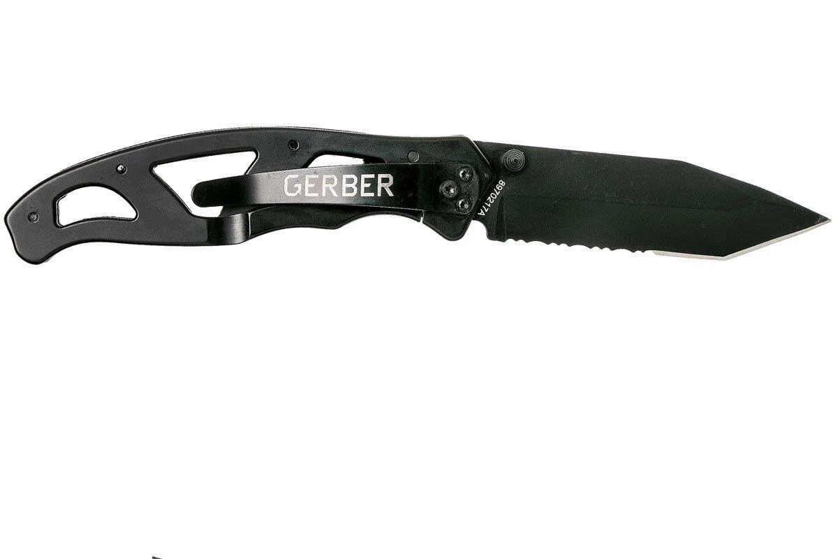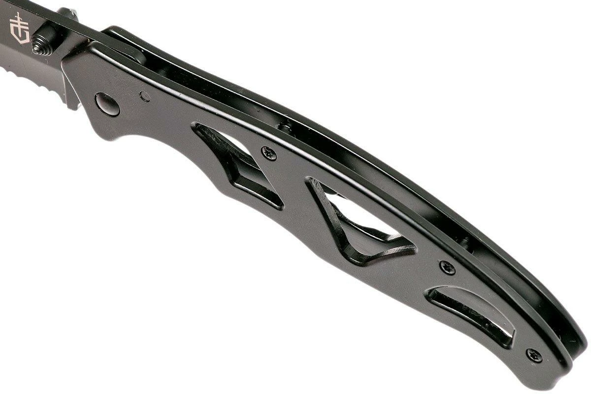 La Gerber Paraframe II Tanto es la edición más grande y táctica de la clásica Paraframe. La navaja es completamente negra y tiene una hoja parcialmente dentada y puntiaguda. El armazón abierto, similar al del Paraframe original, ahorra peso y garantiza que la navaja pueda limpiarse fácilmente. Una llamativa navaja táctica de bolsillo.