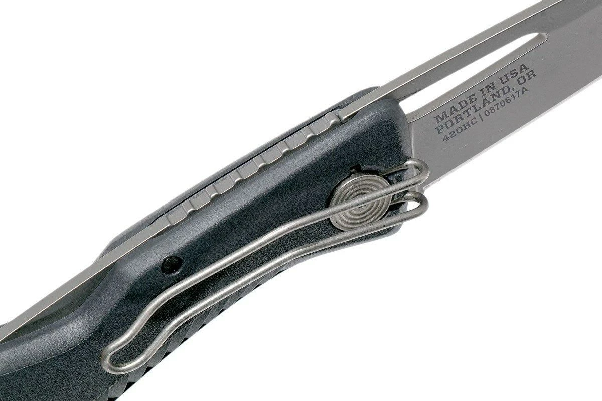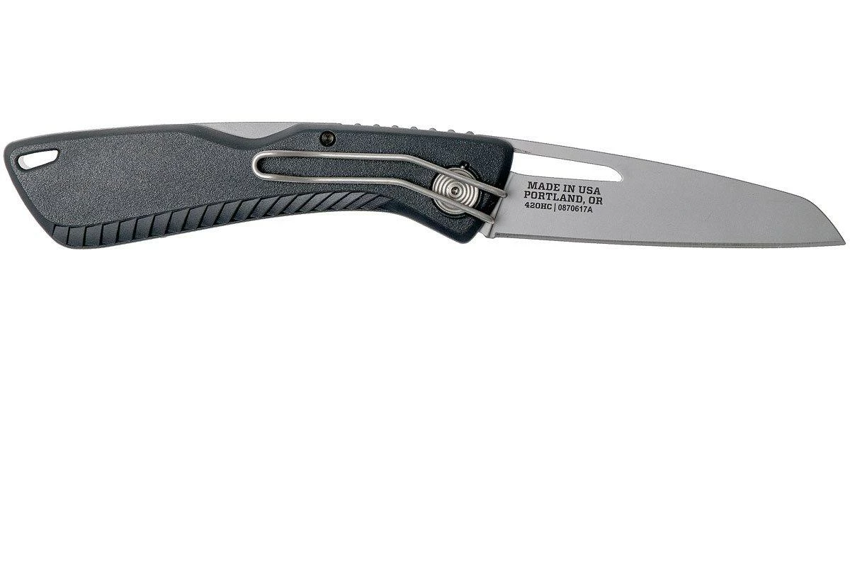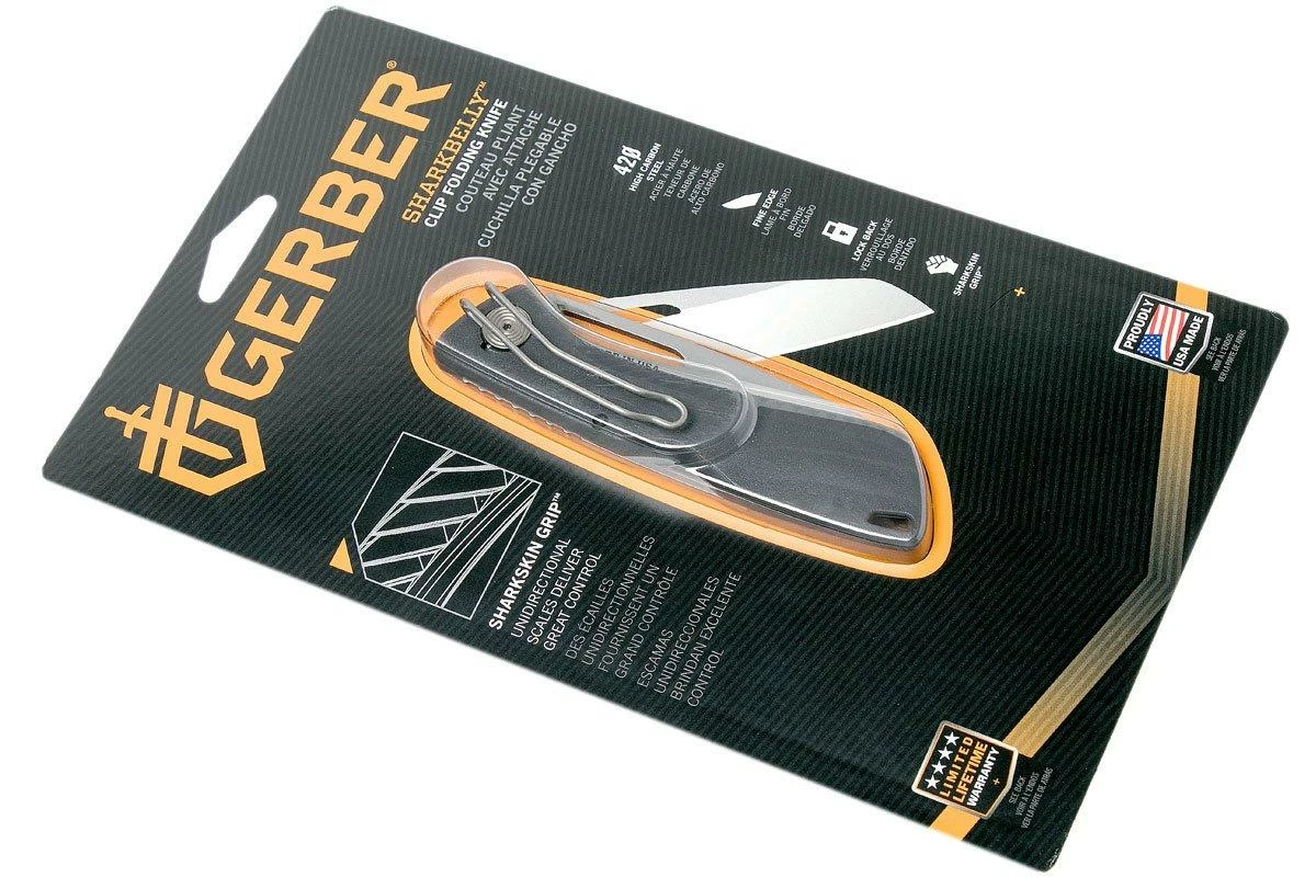La Gerber Sharkbelly es una navaja ligera para uso diario. Se abre la hoja con una mano usando el pulgar. El recorte alargado de la hoja hace que esto sea realmente fácil. El mango está hecho de FRN. Se trata de un plástico reforzado con vidrio que combina un bajo peso con una gran resistencia. Gerber ha mejorado el mango con piel de tiburón. De ahí viene también el nombre de Sharkbelly. Cuando se abre, un bloqueo backlock garantiza que el cuchillo se mantenga en su sitio.