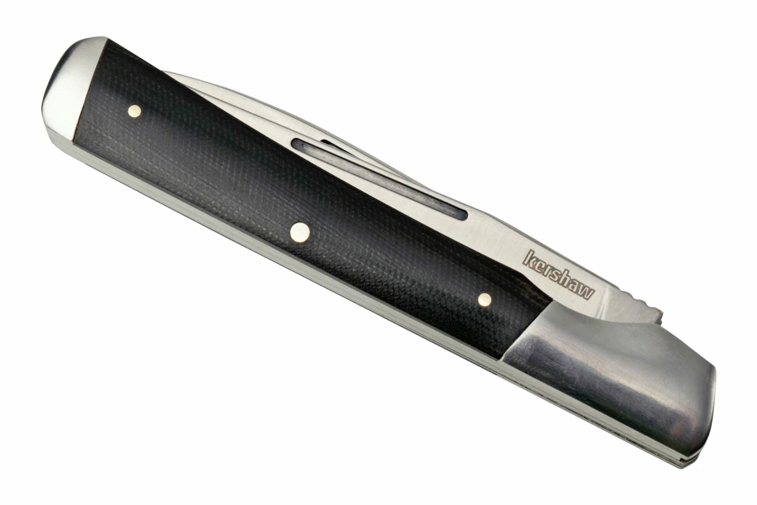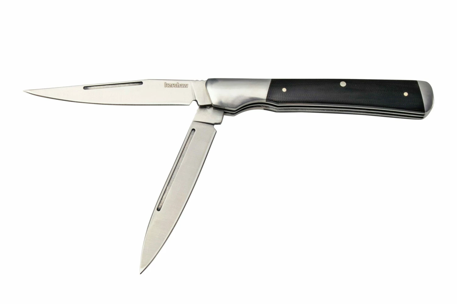 La Kershaw Allegory es una navaja con dos hojas. El cuchillo está inspirado en el tradicional cuchillo de médico. Como su nombre indica, el cuchillo de médico era originalmente para los doctores. El extremo del mango es plano y cuadrado y estaba destinado a triturar pastillas y otros medicamentos. El cuchillo tiene una punta de clip y una hoja de punta de lanza. No son muy diferentes, pero ambos son igualmente versátiles.