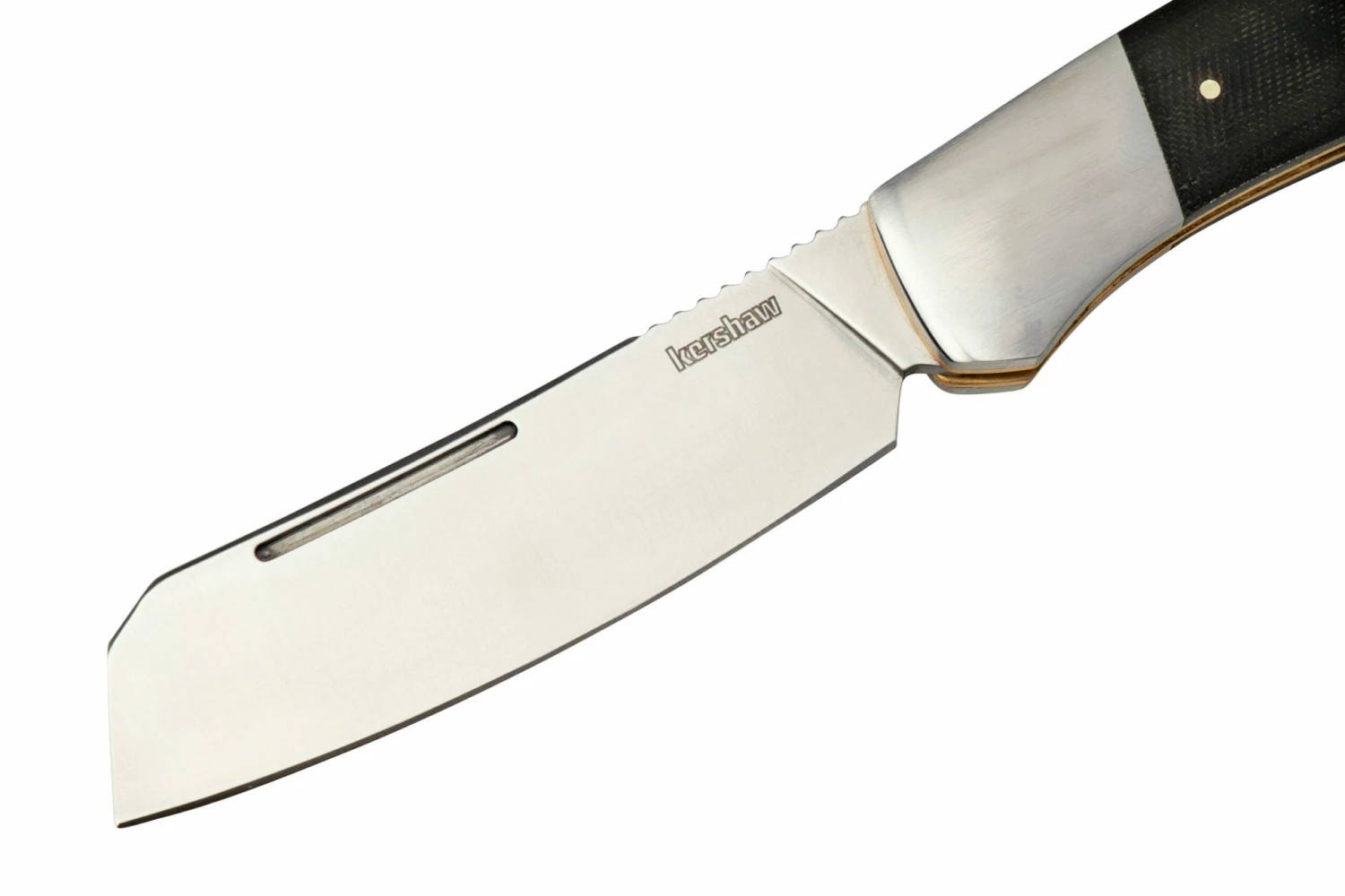 La Kershaw Parley es una elegante navaja con una hoja especialmente diseñada. Nos recuerda un poco a un hacha de cocina. ¿Una hacha de bolsillo, quizás? La diferencia es que la hoja es delgada y muy afilada. No recomendamos intentar usar esta navaja como si fuera un hacha de cocina, pero puede cortar y picar como las mejores.