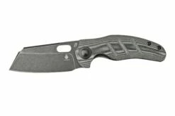 La Kizer C01C es una robusta navaja, diseñada por Chris Conaway de Sheepdog Knives. Las proporciones de la hoja y el mango son sorprendentes. La hoja parece enorme en comparación con el mango “normal”. Esto hace que la hoja sheepsfoot pueda parecerse un poco a una hacha de carnicero. Una hacha de carnicero de bolsillo. La hoja funciona con rodamientos de bolas, por lo que la C01C se abre fácil y rápidamente.