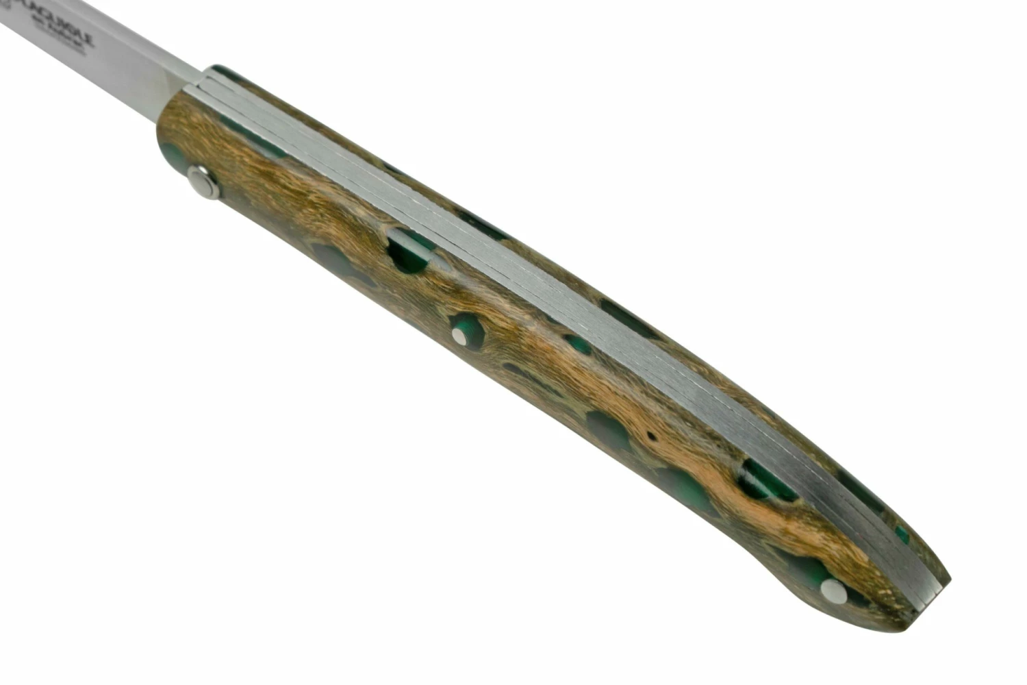 La Laguiole en Aubrac Capucin Green Cholla Cactus es una pequeña navaja francesa con un diseño clásico y mucho carácter. El cuchillo tiene un mango especial hecho de madera de cactus y resina sintética verde. Esta navaja está hecha a mano para garantizar un acabado refinado.