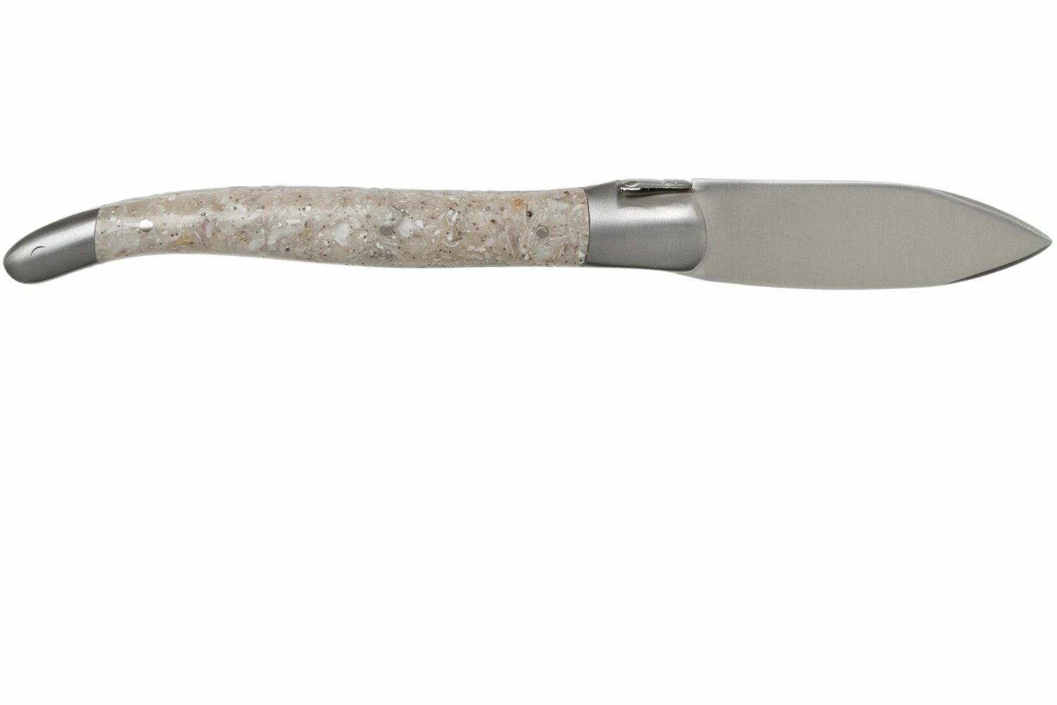 Este cuchillo para ostras de Laguiole en Aubrac es un notable y lujoso cuchillo para abrir ostras y otros mariscos con seguridad y facilidad. Lo más destacable de este cuchillo es el mango, que está hecho de conchas de ostras molidas y resina sintética. Los trozos de concha de ostra brillan con la luz y cambian de color de blanco a nácar. Un regalo impresionante y el punto culminante de toda celebración con ostras exitosa.