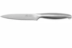 El cuchillo universal Fuso Nitro+ de Lion Sabatier (dentado) es perfecto para cortar alimentos pequeños con una piel relativamente dura y un interior blando. Piensa en cortar tomates y salchichas o cortar una naranja por la mitad.