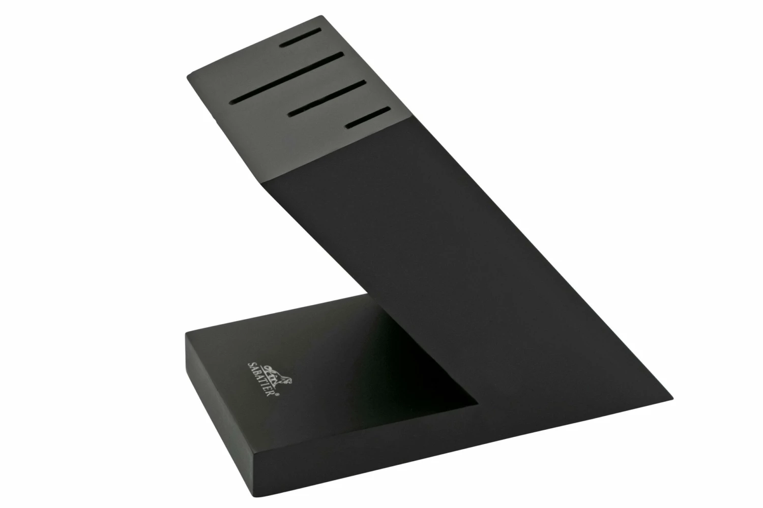 El bloque de cuchillos Lion Sabatier International Mon Bloc III, 662680 con 4 cuchillos es un juego de cuchillos chic y versátil de Sabatier. Su elegante diseño confiere a este conjunto un aspecto chic. En cuanto al material, Sabatier ha optado por un mantenimiento sencillo. El bloque para cuchillos es de madera de pino negro y tiene espacio suficiente para los 4 cuchillos incluidos.