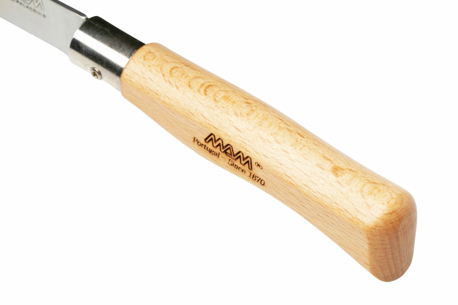 La MAM Douro L es una práctica navaja con una hoja puntiaguda de punta de clip. El cuchillo lleva el nombre del río Duero, en Portugal. Como en todos los cuchillos MAM, la hoja se abre con la muesca de la uña. El mango de la navaja Douro es ligeramente más grueso en el centro y en el extremo, por lo que se siente muy bien en la mano.