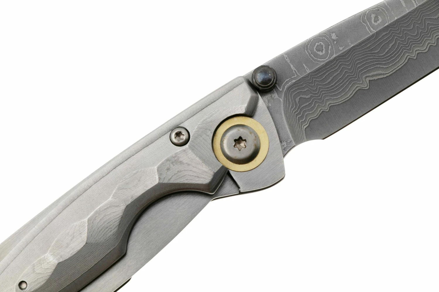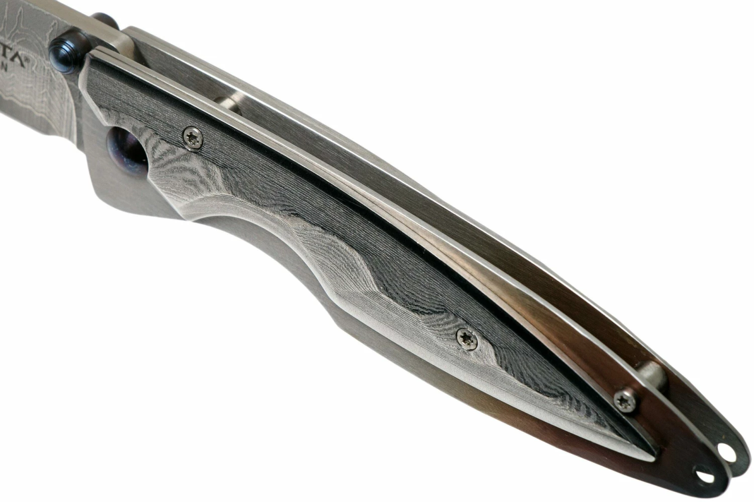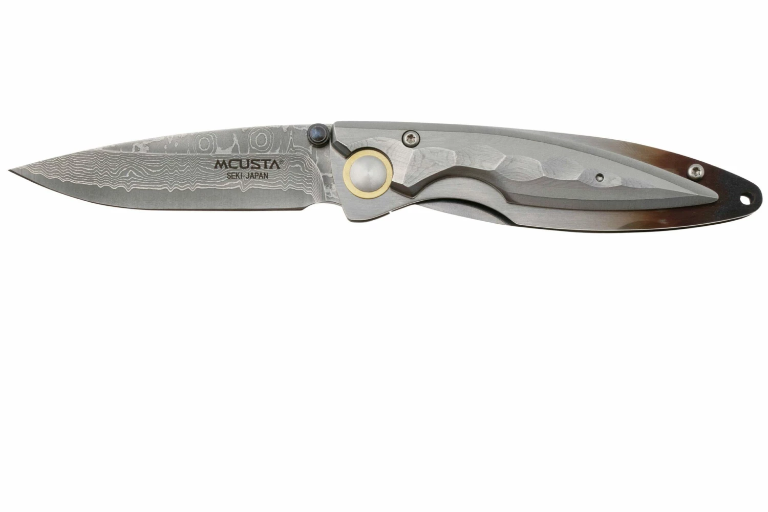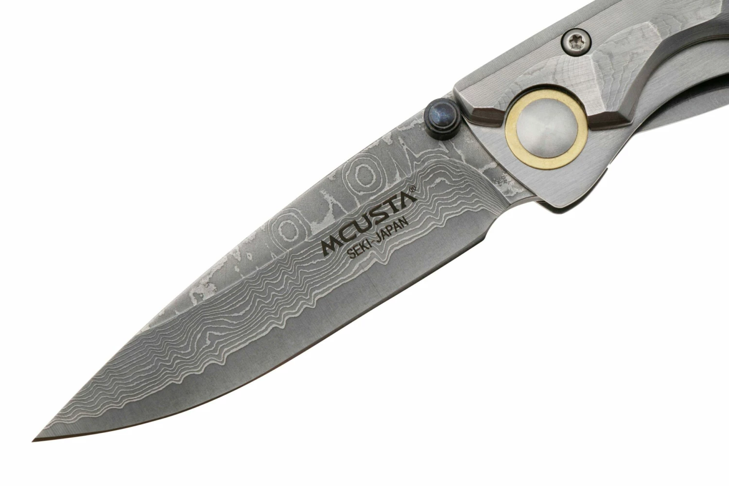 La Mcusta MC-0031D Shinra Kasumi es una esbelta navaja con mango de acero de Damasco. Los revestimientos de acero son parcialmente visibles, lo que da a la navaja un aspecto muy distintivo. Este aspecto único se ve reforzado por el acero ligeramente martillado utilizado para los revestimientos. El acero de Damasco también ofrece un relieve.