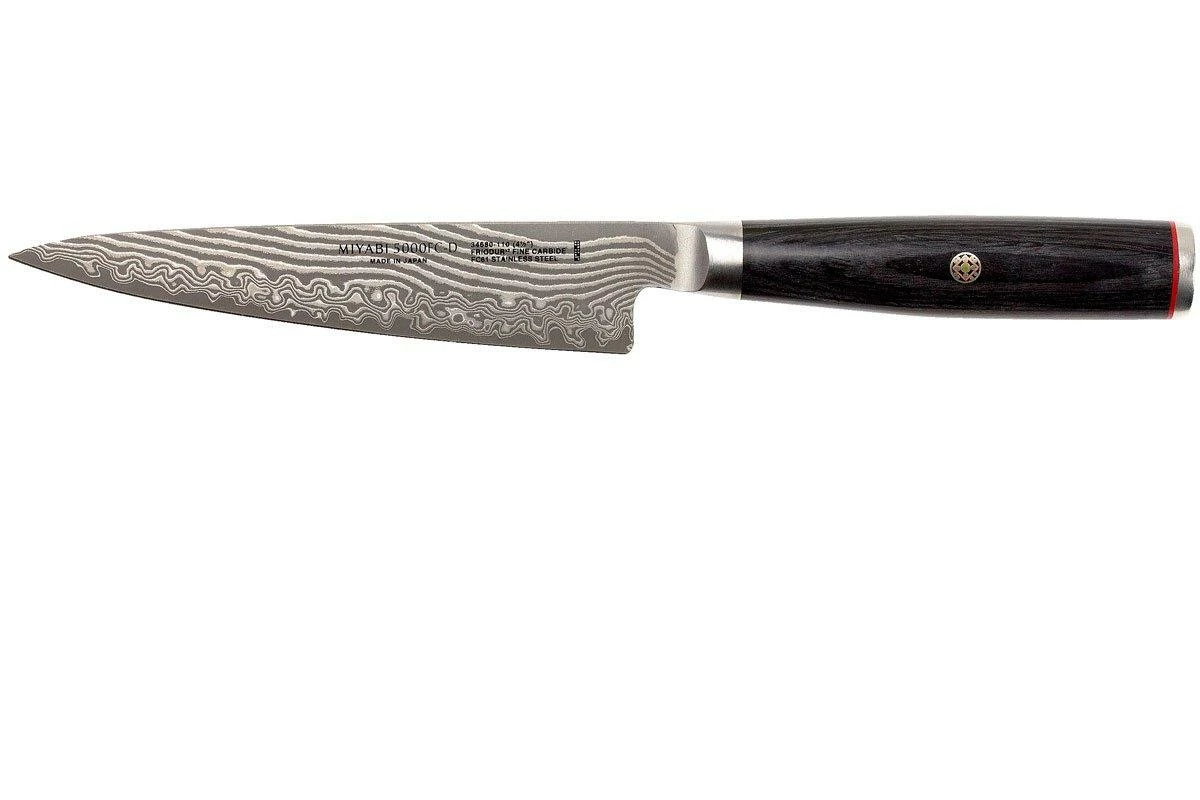 El Miyabi 5000FCD shotoh 34680-111 es un cuchillo puntilla con una longitud de hoja de 11 cm. El cuchillo ha sido fabricado en la fábrica de Zwilling J. A. Henckels en Seki, Japón.