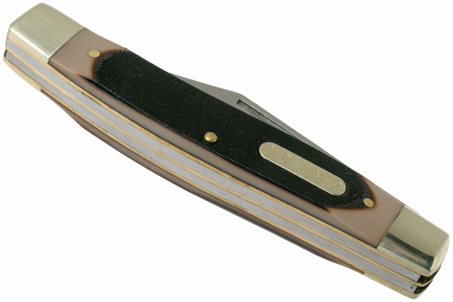 La Old Timer Senior 8OT es una navaja slipjoint económica con mango de polímero. Es una compacta tradicional con tres hojas: una clip point, una sheepsfoot y una pluma. Las hojas se abren con las dos manos y, una vez abiertas, un slipjoint bloquea la hoja en su lugar. No es un bloqueo total, sólo algo de resistencia. Esto significa que puedes llevar estos cuchillos legalmente en casi cualquier lugar.