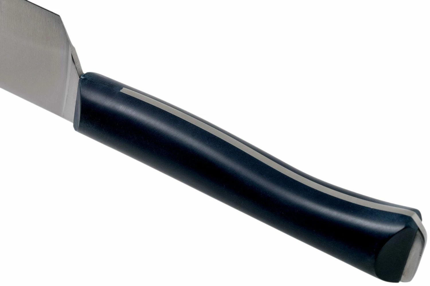 Este cuchillo de chef Opinel Intempora no. 218, 20 cm es un cuchillo de cocina que, por la forma del mango, puede recordar a las famosas navajas Opinel. Es un cuchillo decente con el que se puede trabajar eficazmente. El estilizado mango de plástico hace que el cuchillo tenga un aspecto muy elegante.