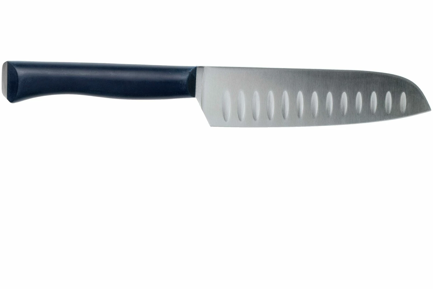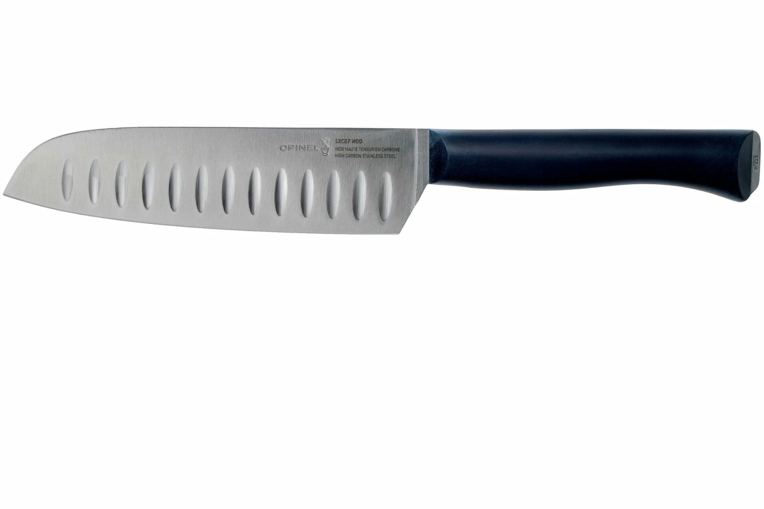 Este cuchillo santoku Intempora de Opel nº 219, 17 cm es un cuchillo de cocina que, por la forma del mango, puede recordar a las famosas navajas Opinel. Es un cuchillo decente con el que se puede trabajar eficazmente. El estilizado mango de plástico hace que el cuchillo tenga un aspecto muy elegante.