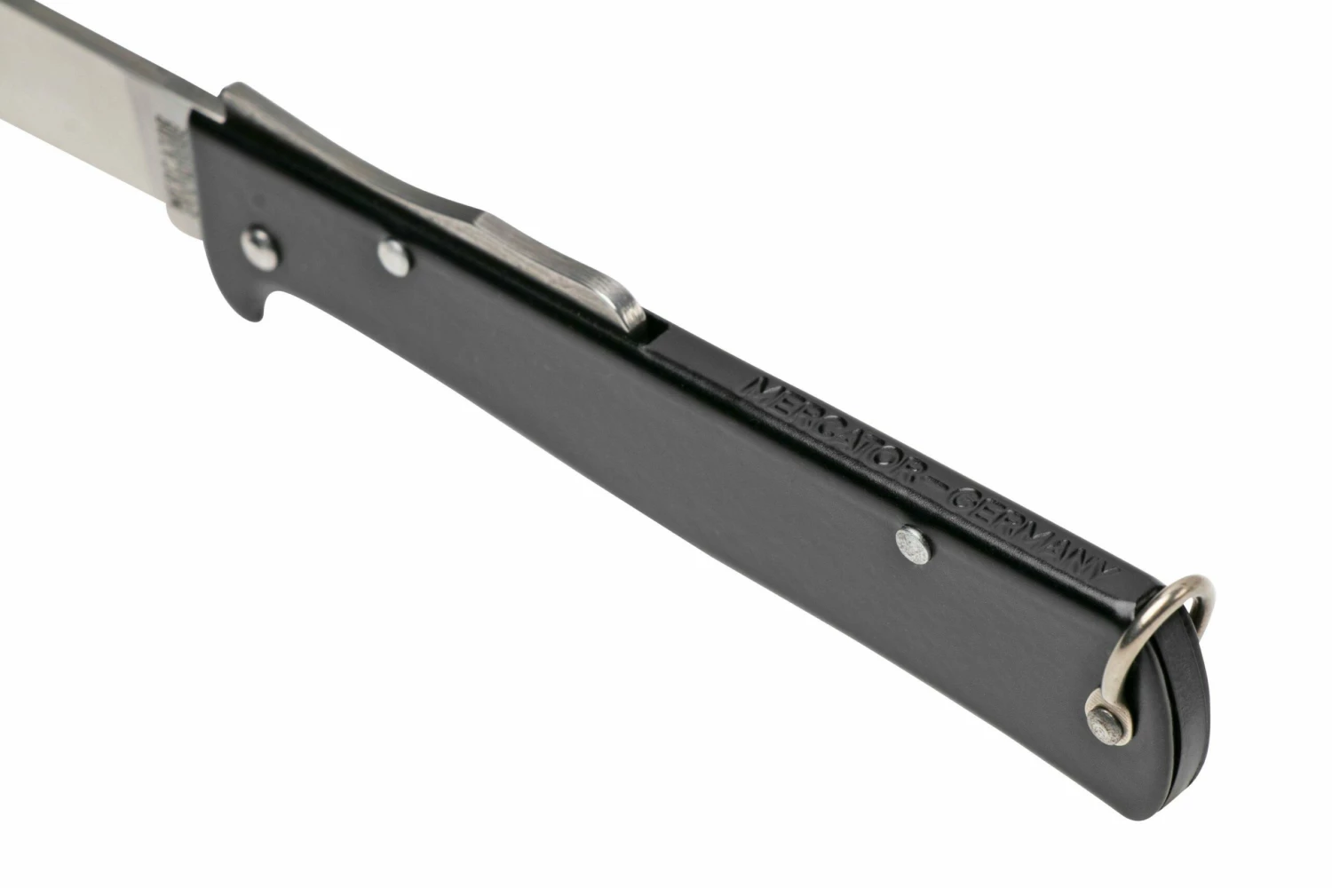 La Otter Mercator 10-426 RG R es una navaja grande. El mango es de acero inoxidable, la hoja de acero inoxidable 1.4034. Esta Mercator no está mejorada con un clip de bolsillo. El gancho del acollador permite añadir fácilmente un cordón.