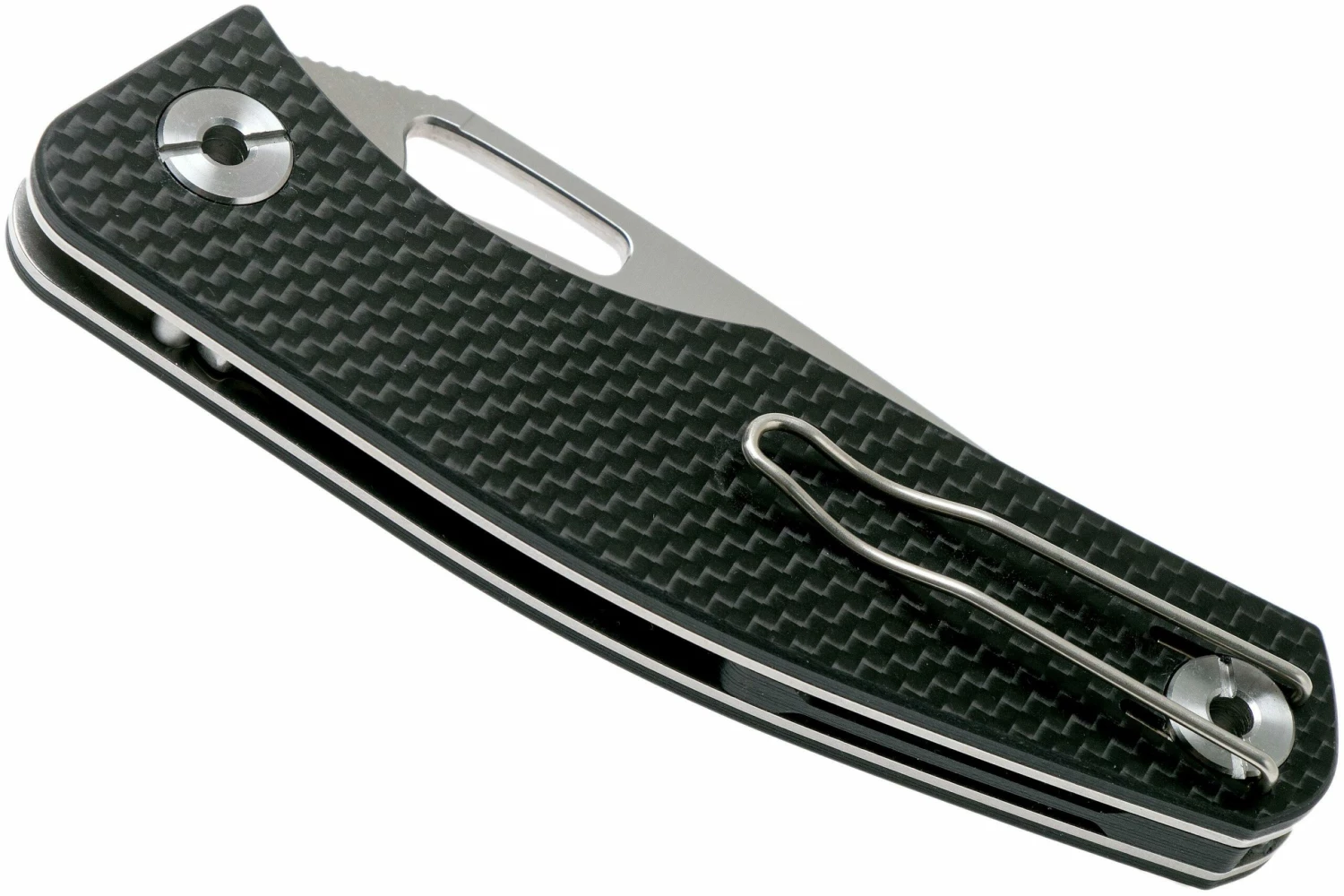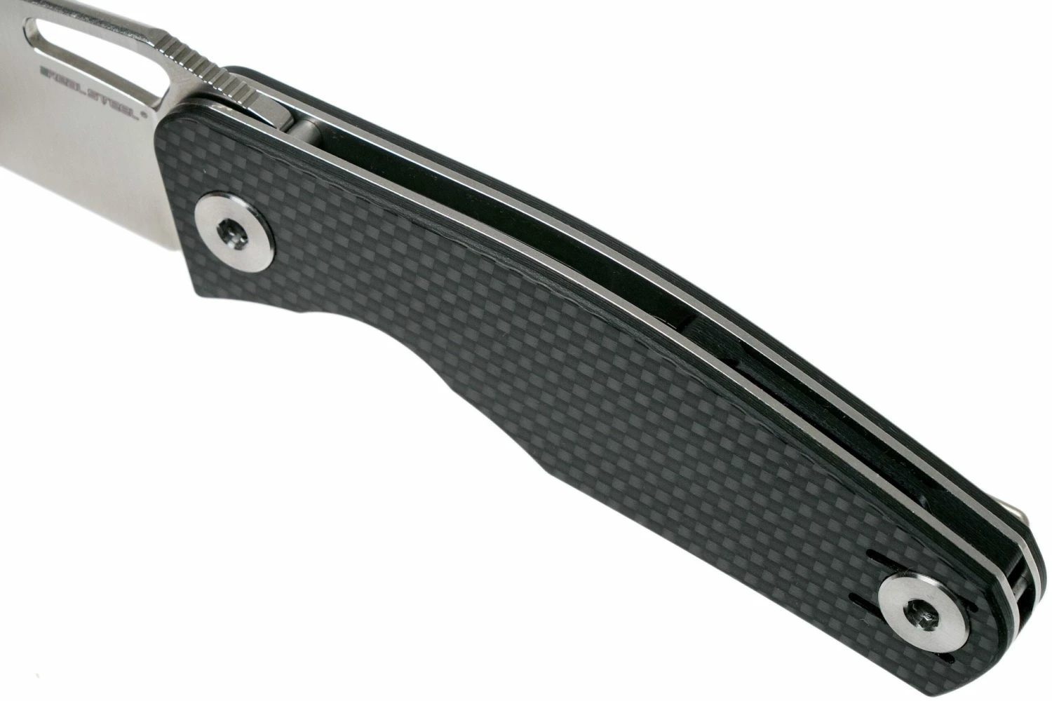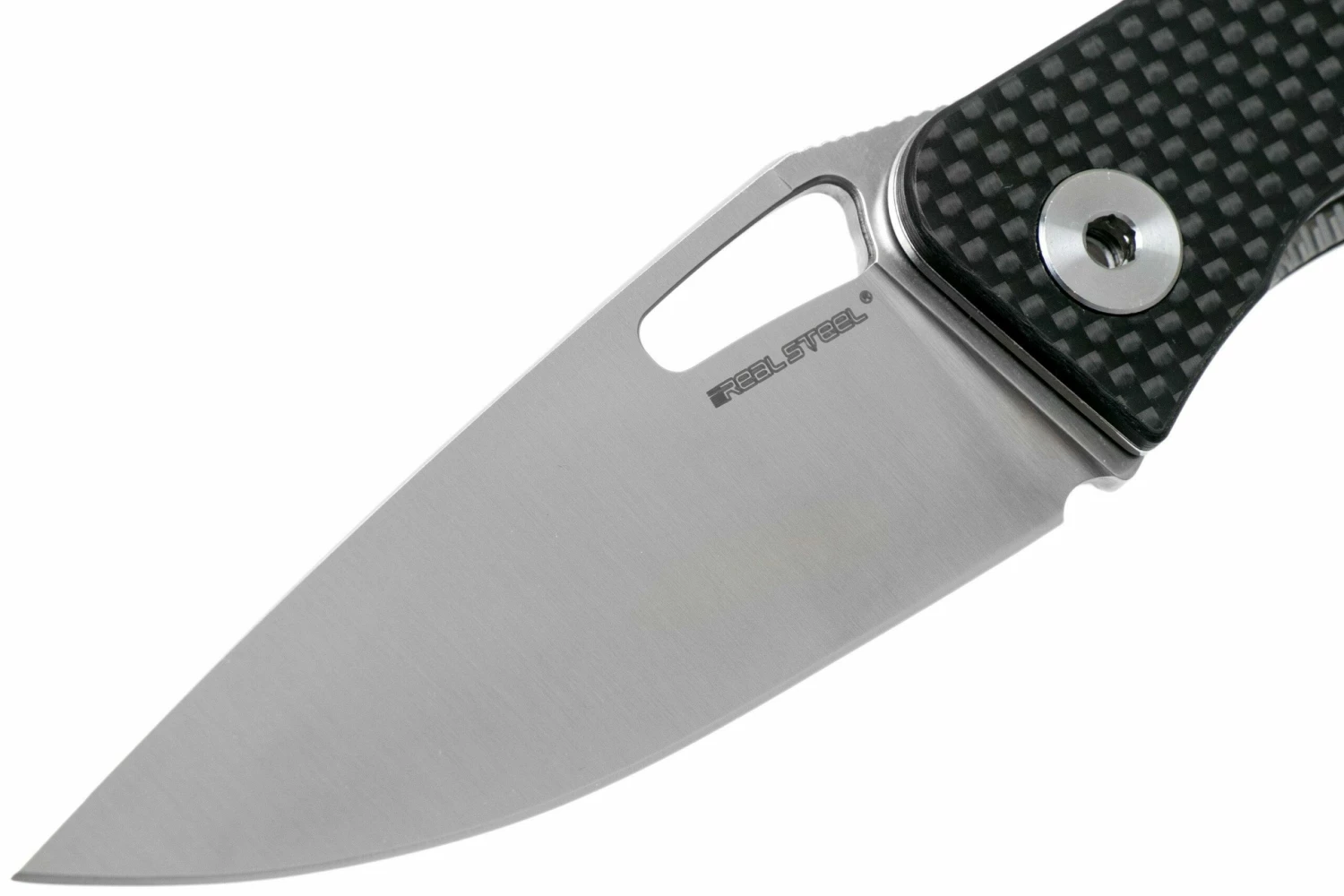 La Real Steel Terra CF 7454 es una práctica navaja EDC, diseñada por Poltergeist Works. Este fabricante de cuchillos polaco es conocido por sus diseños robustos y elegantes. La Terra no es una excepción. La hoja ha sido mejorada con un afilado plano completo, esto significa que tiene un afilado fino desde el lomo hasta el filo. La única interrupción que se ve es la del filo de la navaja.