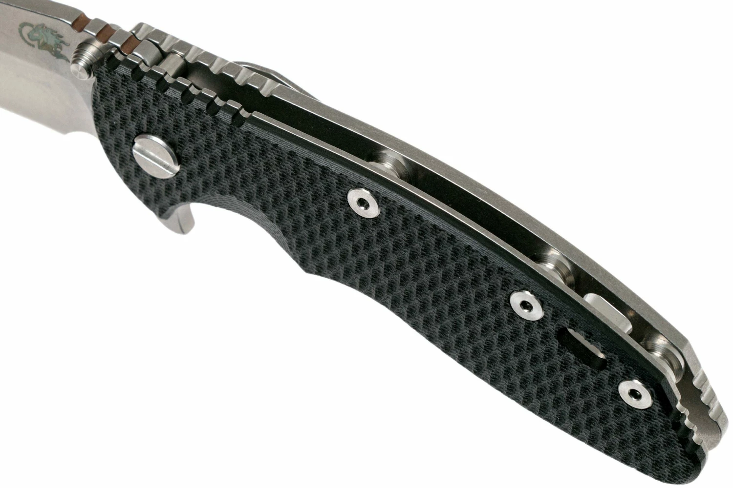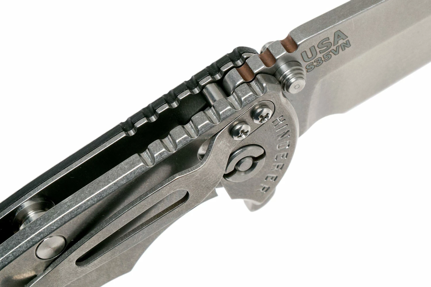 La Rick Hinderer XM-18 3.5″ es una navaja grande y sólida que está hecha para ser usada. Un cuchillo de trabajo de primera calidad. El acabado es sencillamente perfecto; se agarra donde sea necesario y se curva donde sea posible. Como tal, se siente increíble en la mano. Cuando está abierto, el flipper mantiene tus manos alejadas del filo. De este modo, nunca tendrás que preocuparte por el deslizamiento durante las tareas de corte más exigentes.
