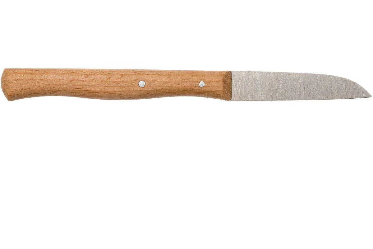 El cuchillo pelador clásico recto de haya roja Robert Herder sigue los pasos de los famosos cuchillos de molino de Robert Herder. Este cuchillo pelador es ideal para pelar frutas y verduras. También puede utilizarse para otros pequeños trabajos de corte. La hoja de acero inoxidable puro se afila a mano según el principio tradicional alemán “Solinger Dünnschliff”. El resultado es un cuchillo muy afilado. El mango es de madera de haya roja y está perfectamente unido a la hoja con tres remaches.