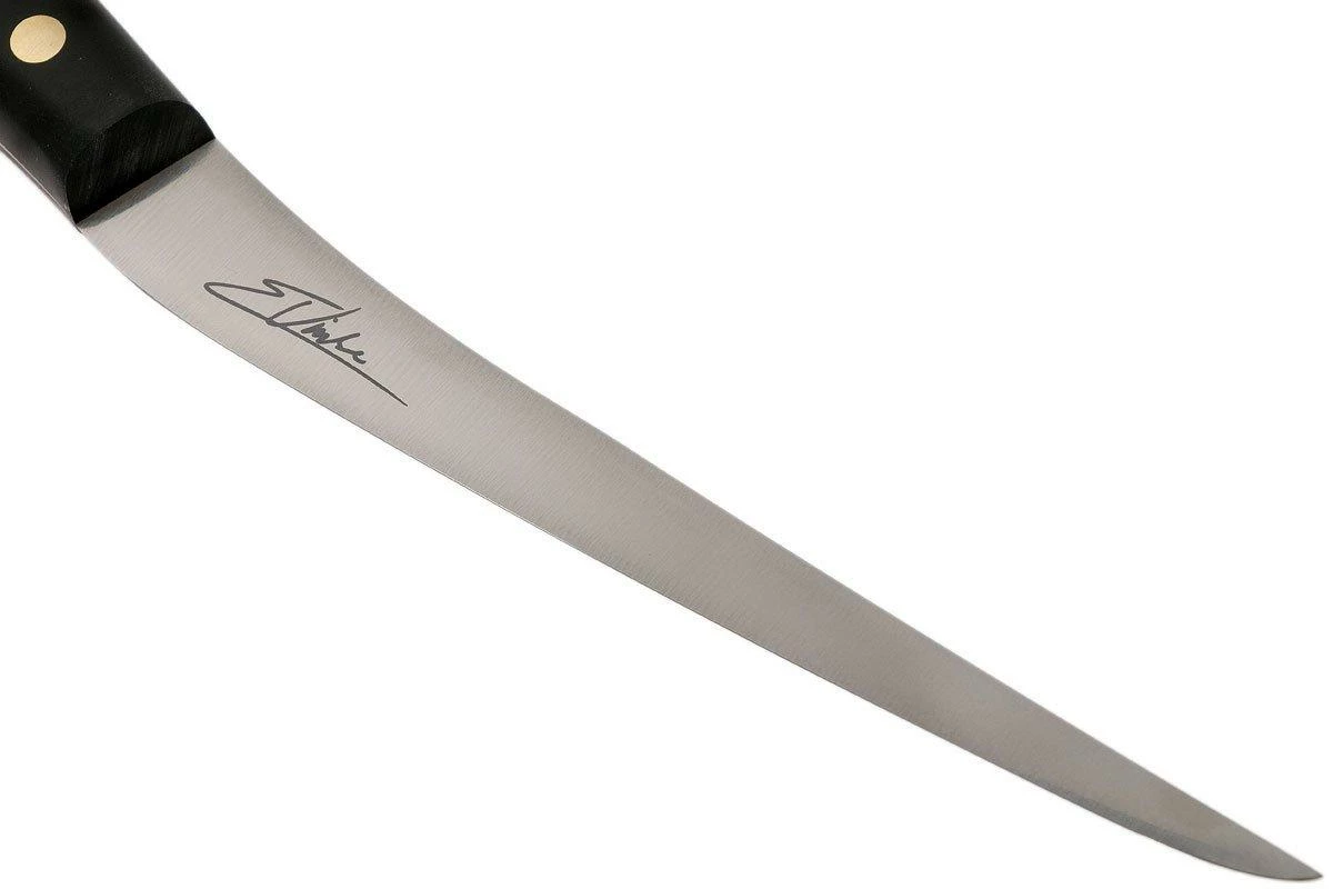 El cuchillo de filitear especial Robert Herder Edwin Vinke tiene una hoja delgada y flexible que se estrecha hacia la punta. Esto lo hace perfecto para cortar de lado. El mango curvo se adapta perfectamente a la mano.