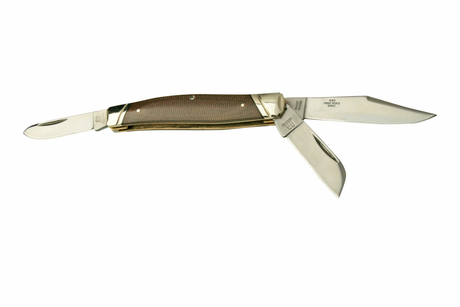 La Rough Ryder Stockman es una navaja tradicional. Sigue el patrón clásico del cuchillo stockman. Este cuchillo está mejorado con tres hojas: clippoint, sheepsfoot y pluma. Todas las formas tradicionales que se adaptan perfectamente a una navaja como ésta. Ambas hojas se abren con las dos manos y un slipjoint evita que se cierren involuntariamente, aunque no las bloquea completamente. Como tal, puedes llevar esta navaja legalmente en muchos lugares de Europa.