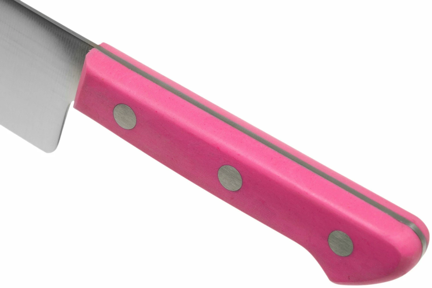 Este cuchillo de chef para niños Sakai Takayuki, rosa es un cuchillo de cocina japonés para todo pequeño príncipe o princesa de la cocina. El cuchillo tiene un mango pequeño y la hoja es más segura. La punta, por ejemplo, es roma y el talón del cuchillo también es redondeado. Esto reduce el riesgo de accidentes. Queremos mencionar que la hoja en sí está afilada. Incluso afilada como una navaja. ¿Sueña tu hijo con convertirse algún día en chef profesional o simplemente le encanta cocinar? Con este cuchillo de chef apto para niños pueden ponerse a trabajar con total seguridad.