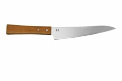 El cuchillo de pan Shizu Hamono Morinoki SM-4000 es un cuchillo de pan japonés diseñado para ser sencillo y eficaz. El mango cuadrado de madera de zelkova confiere al cuchillo un aspecto tranquilo y natural. En la punta de la hoja los dentados son puntiagudos y en el resto de la hoja los dentados son ondulados. Este notable afilado es lo que hace que este cuchillo para pan sea perfecto para cortar los panes más duros y los pasteles más blandos. Y qué decir de las verduras y frutas duras, como los melones, las calabazas y los apios. Este cuchillo sencillo y versátil no puede faltar en ninguna cocina.