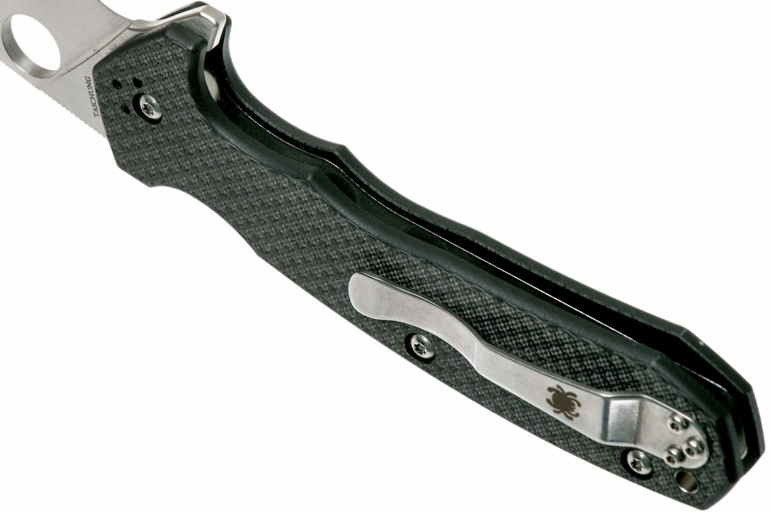 La Spyderco Amalgam es una sólida navaja, diseñada por un joven estudiante llamado Brian Lai. Con una longitud de hoja de 9,7 cm, es una de las Spyderco más grandes de nuestra gama. Por lo tanto, no es tan sorprendente que la Amalgam se fabricara para ser utilizada. El mango ergonómico está mejorado con múltiples ranuras para los dedos para asegurarse de que el cuchillo no resbale de tu mano mientras lo usas. El mango de G10 está reforzado con una fina capa de fibra de carbono que tiene una textura ligera. De este modo, te beneficias de la resistencia del G10, pero sigues teniendo el impresionante aspecto y tacto de la fibra de carbono. Para la Amalgama Spyderco elige el acero CPM S30V. Un tipo de acero robusto e inoxidable que puede soportar lo suyo.