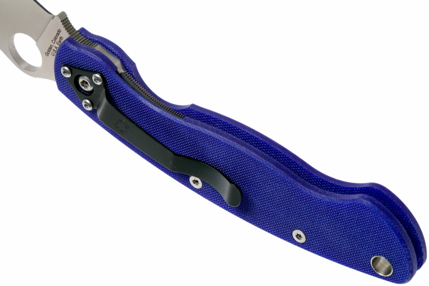 La Spyderco Military C36GPDBL es una navaja grande y sólida. La Military fue diseñada en 1996 por Sal Glesser, el fundador y propietario de Spyderco. Su objetivo era desarrollar una navaja plegable de peso ligero para uso militar general que pudiera realmente hacer frente a la tarea. Teniendo en cuenta la popularidad de las Fuerzas Armadas, tuvo mucho éxito en la consecución de sus objetivos.