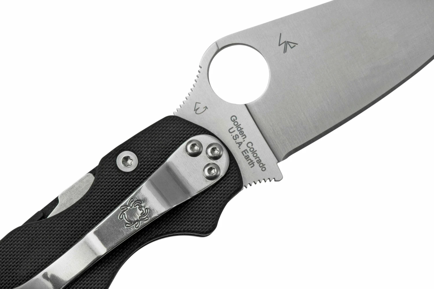 La Spyderco Paramilitary 2 es una increíble navaja que se fabrica en la factoría de Spyderco en Golden, Colorado, EE. UU., La Tierra. Como con todos los cuchillos de Spyderco, su acabado es absolutamente sublime. Se abre con una suavidad impresionante, y el famoso bloqueo Compression Lock, diseñado por Sal Glesser, el fundador de Spyderco, es muy resistente y fácil de usar.