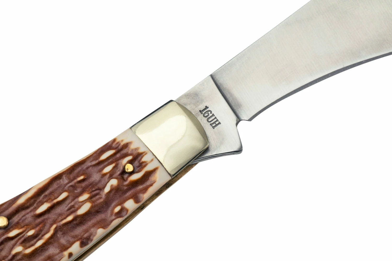 La Uncle Henry Hawkbill Pruner Next Gen 16UH es una navaja clásica asequible. Se ha mejorado con una forma de hoja hawkbill. Perfecto para cortar setas durante una excursión, o como cuchillo de caballero. Se abre con las dos manos y una junta deslizante garantiza que no se cierre cuando no se quiere. No se trata de un cierre completo, sino simplemente de cierta resistencia a cerrarse. Como tal, puedes llevar la navaja legalmente contigo casi en cualquier lugar.