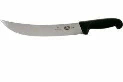 Este Victorinox Fibrox Pro Cimeter es uno de los mejores cuchillos de carnicero del mercado actual. El cuchillo está mejorado con una hoja larga y curvada. Perfecto para cortar trozos de carne más grandes en trozos más pequeños. Gracias a la hoja curvada y al filo muy afilado, se puede extraer fácilmente la carne cerca del hueso.