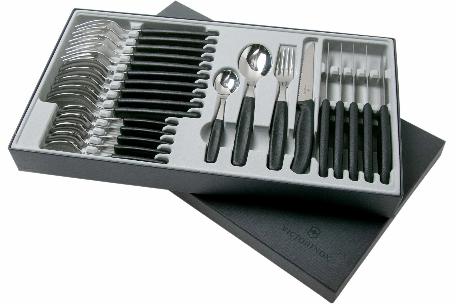 El Juego de Cubiertos SwissClassic de 24 piezas de Victorinox es una cubertería completa, perfecta para cualquier mesa. Gracias a los materiales utilizados, los cuchillos para carne son bonitos y ligeros y muy versátiles.