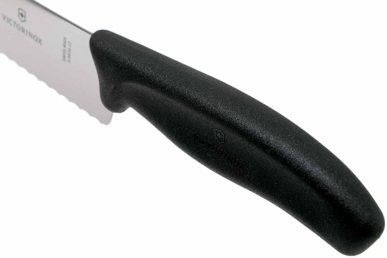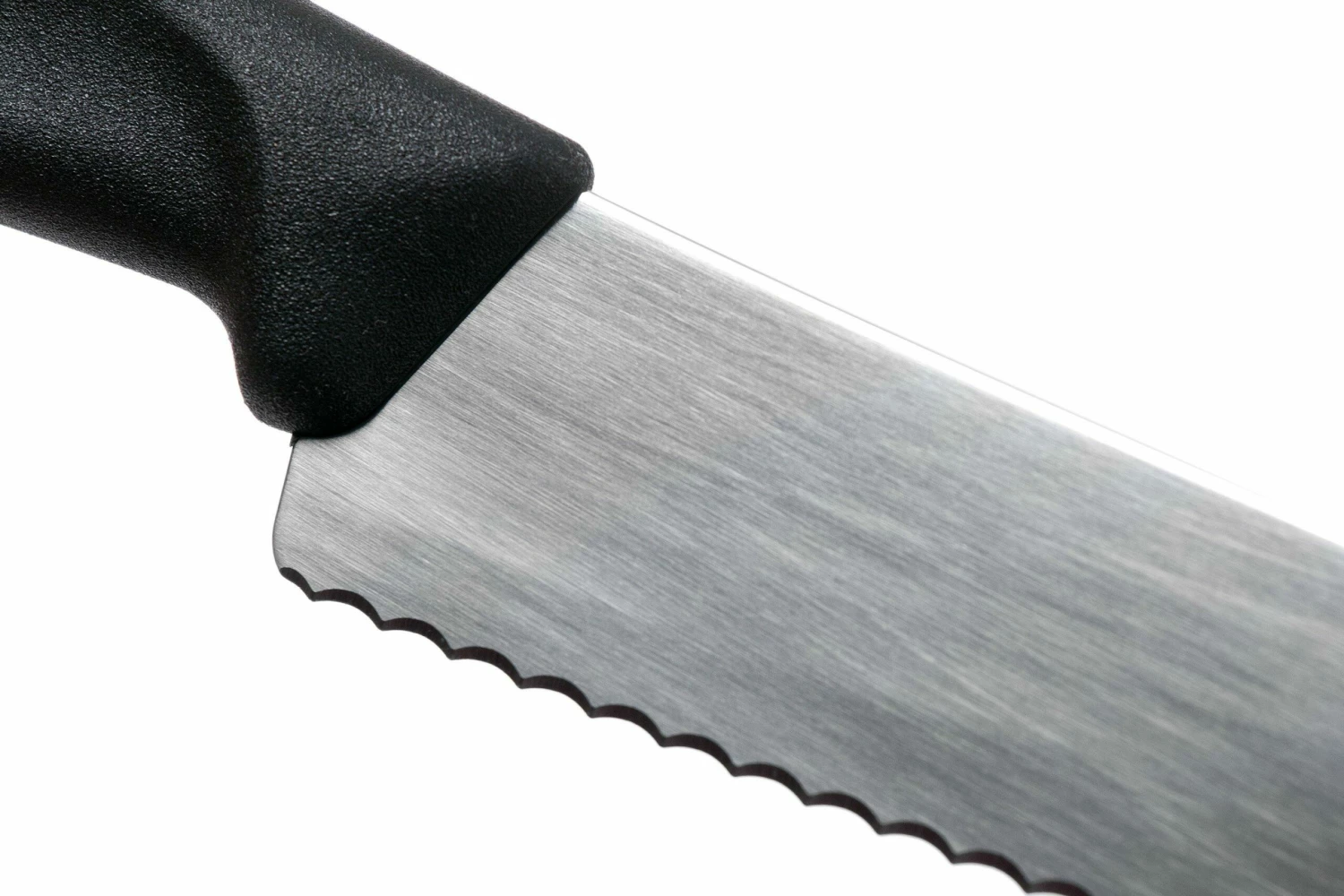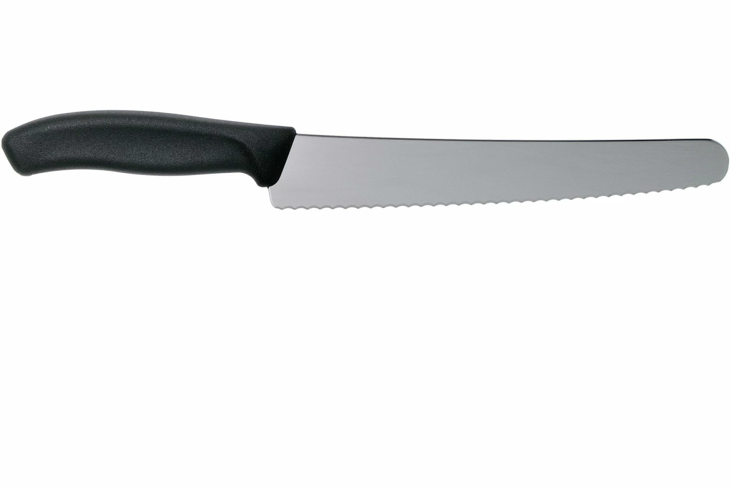 El cuchillo para pan y pastelería Victorinox SwissClassic es perfecto para cortar pan, pasteles y bollería. La hoja es ancha hasta la punta redondeada, para que puedas utilizarla también como espátula o cuchillo de paleta.