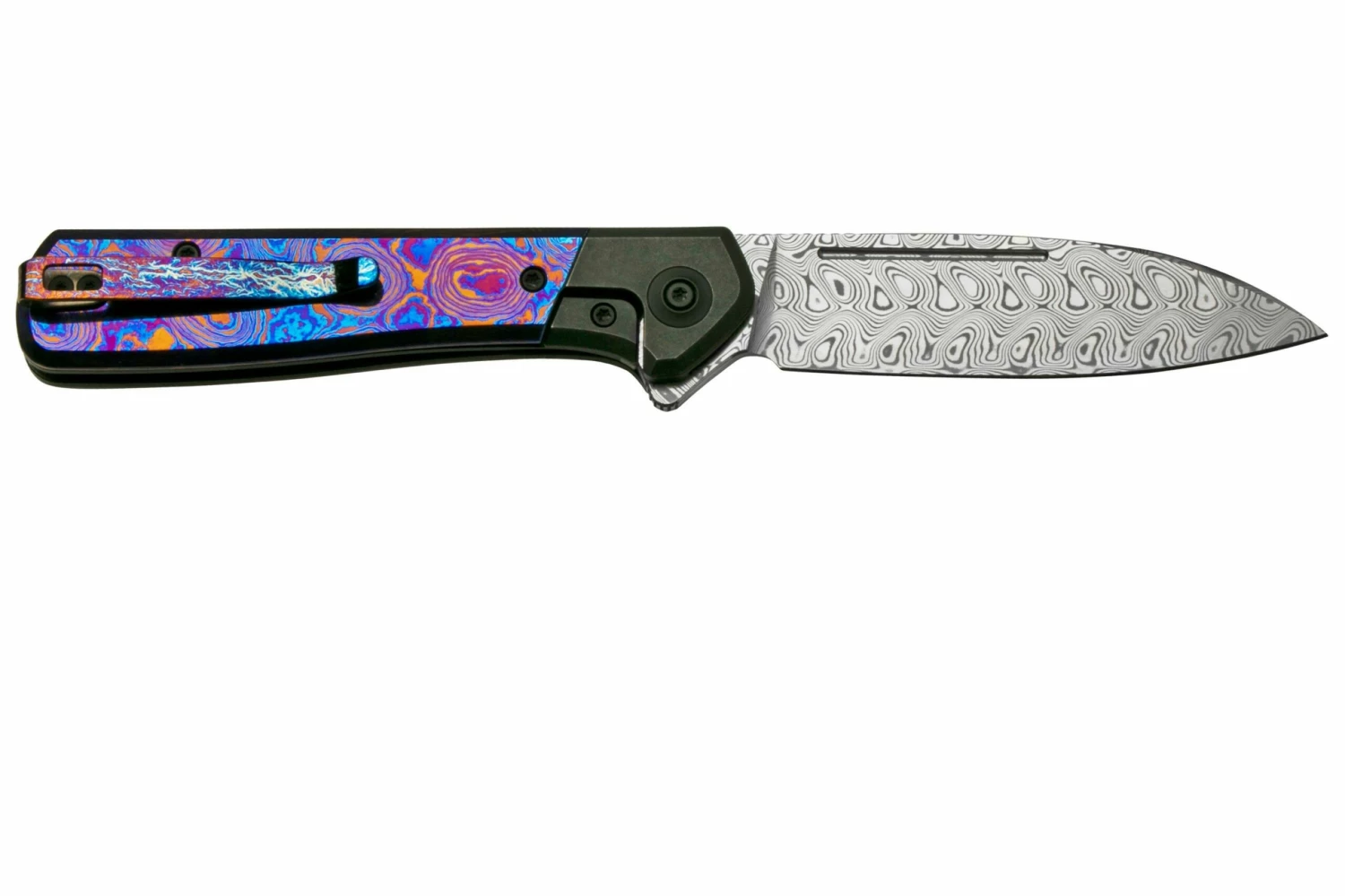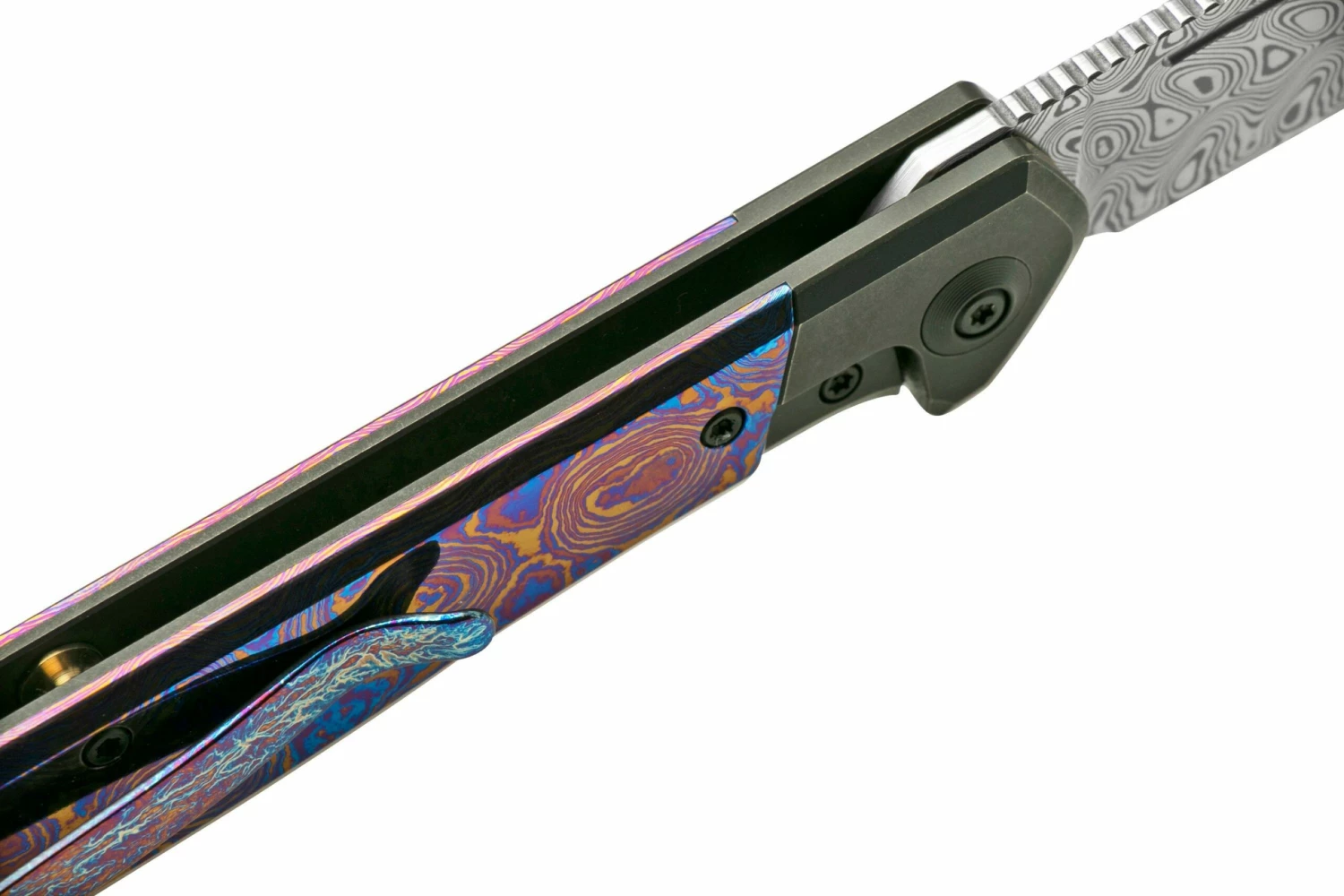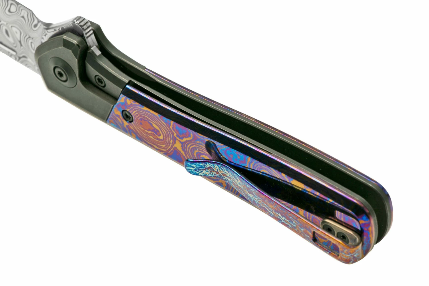 La We Knife Soothsayer WE20050-3 es una navaja realmente hermosa de contemplar. WE Knife ha combinado elementos de diseño tradicionales y modernos, lo que lo convierte en un artículo único de la colección. Esta versión con acero de Damasco es absolutamente impresionante. El cuchillo parece muy fino y tiene buenas proporciones. Para las dimensiones del cuchillo, el peso es bastante bajo. No puedes dejar pasar este cuchillo.