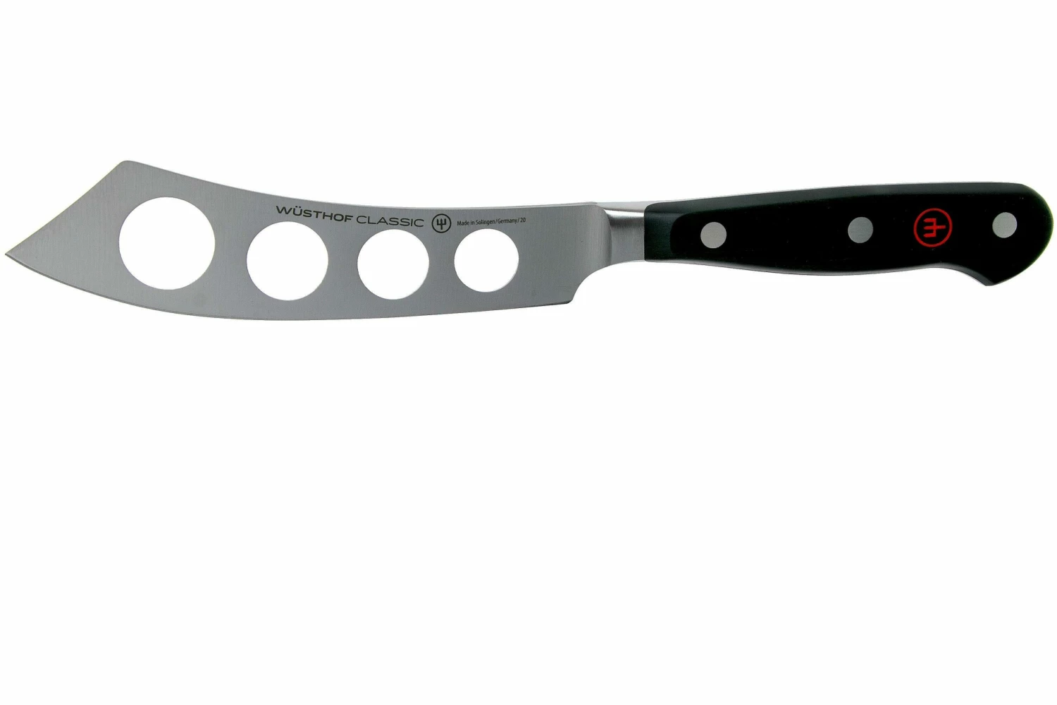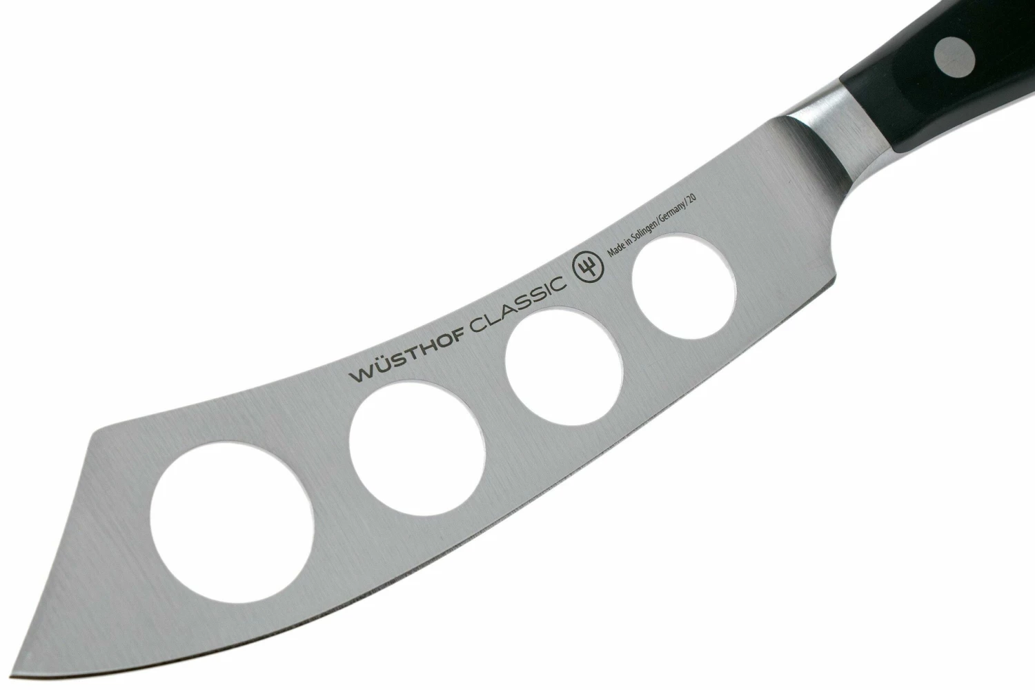 Este cuchillo de queso Wüsthof Classic es ideal cuando necesitas cortar quesos blandos y semiduros. Tanto si quieres disfrutar de un trozo de French Morbier o Le Moulis, un Roem de Alkmaar o un Pecorino, Riserva de Toscana: este cuchillo Wüsthof cortará fácilmente a través de él. La hoja está reforzada con agujeros para asegurarse de que el queso no se pegue a la hoja. Gracias al borde afilado tu queso no perderá su forma.