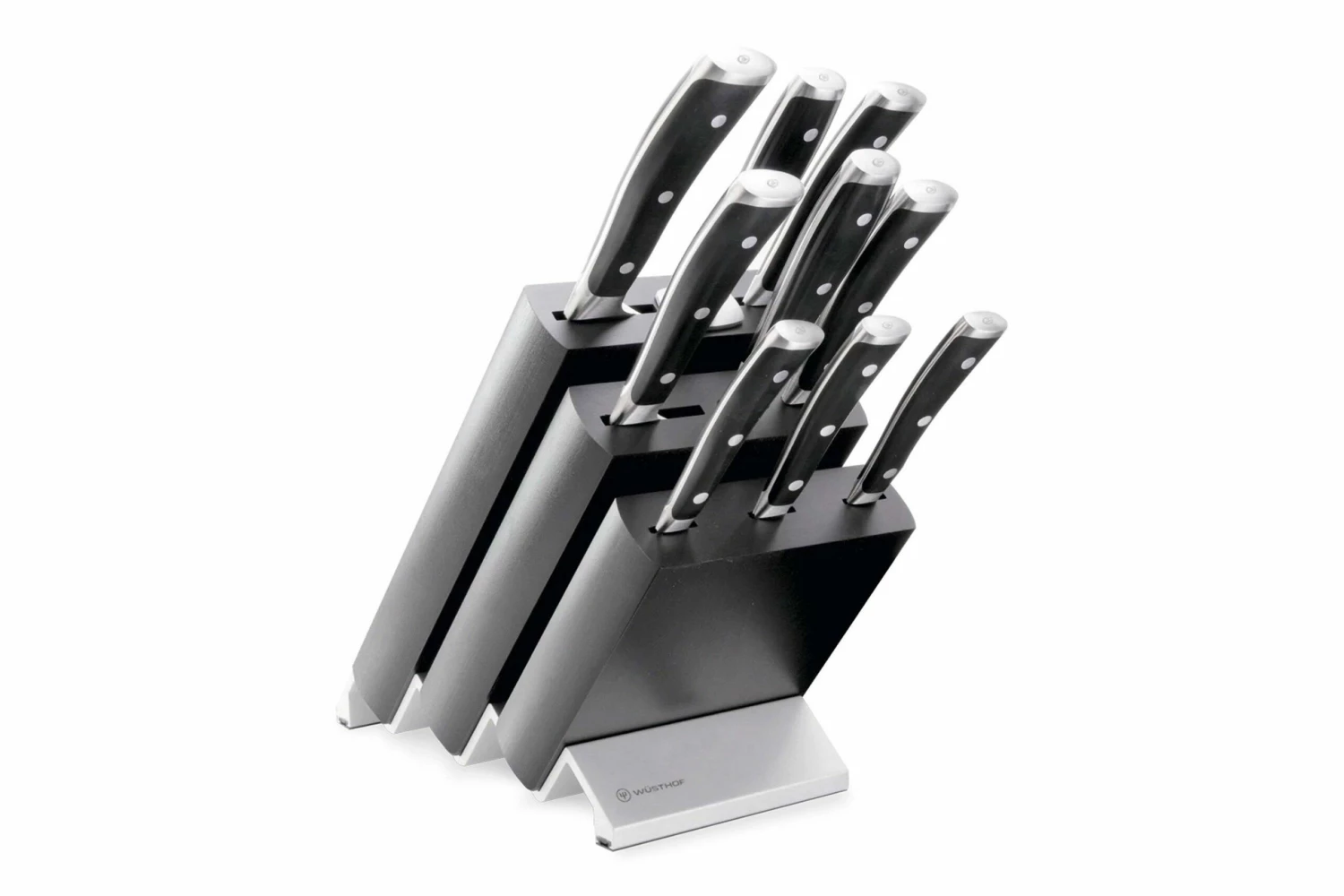 El juego de cuchillos Wüsthof Ikon de 9 piezas es el juego de cuchillos perfecto para todas las tareas de la cocina. El bloque de cuchillos inclinado queda muy bien en todas las encimeras.