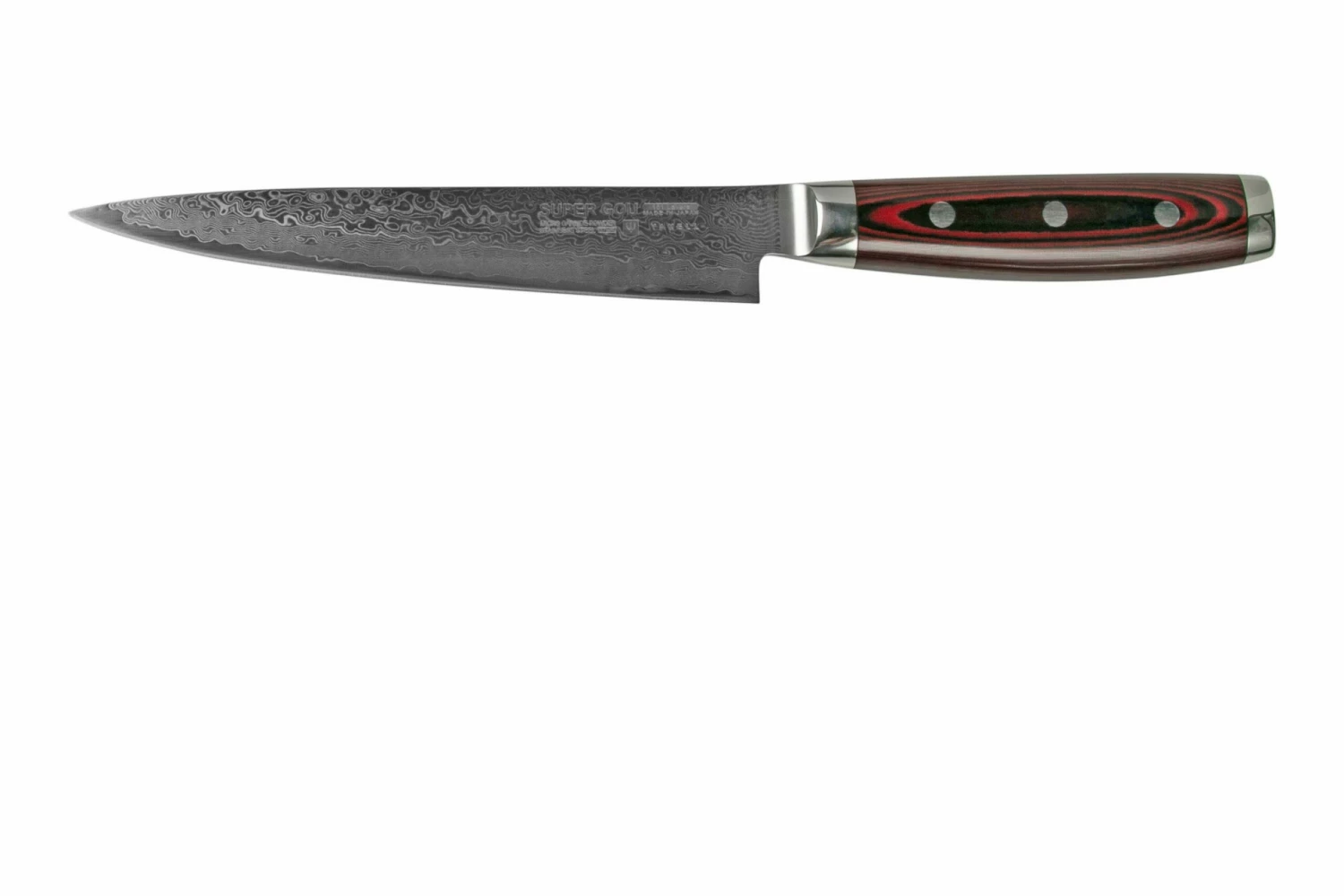 El cuchillo para trinchar Super Gou de Yaxell es un cuchillo para trinchar largo y tradicional japonés. La hoja de 18 cm de largo hace que sea muy fácil cortar rodajas rectas. Por ejemplo, al filetear un pollo o cortar un filete de Wagyu en finas lonchas.