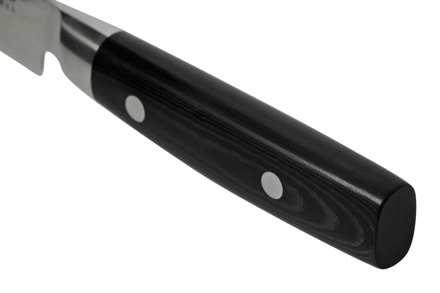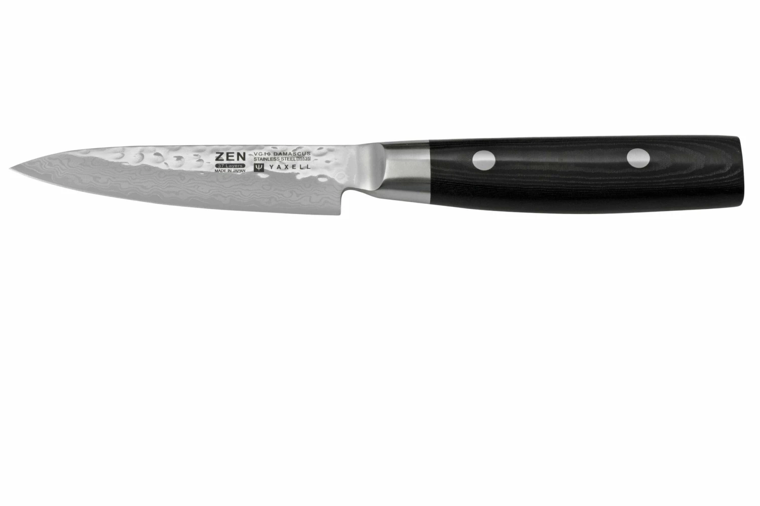 El cuchillo Zen de Yaxell es un práctico y elegante cuchillo de cocina japonés. El cuchillo es muy ligero, en parte debido a su pequeña hoja de 10 cm. Debido a su pequeña hoja y a su bajo peso, el cuchillo es muy fácil de usar. Perfecto para pelar frutas y verduras.