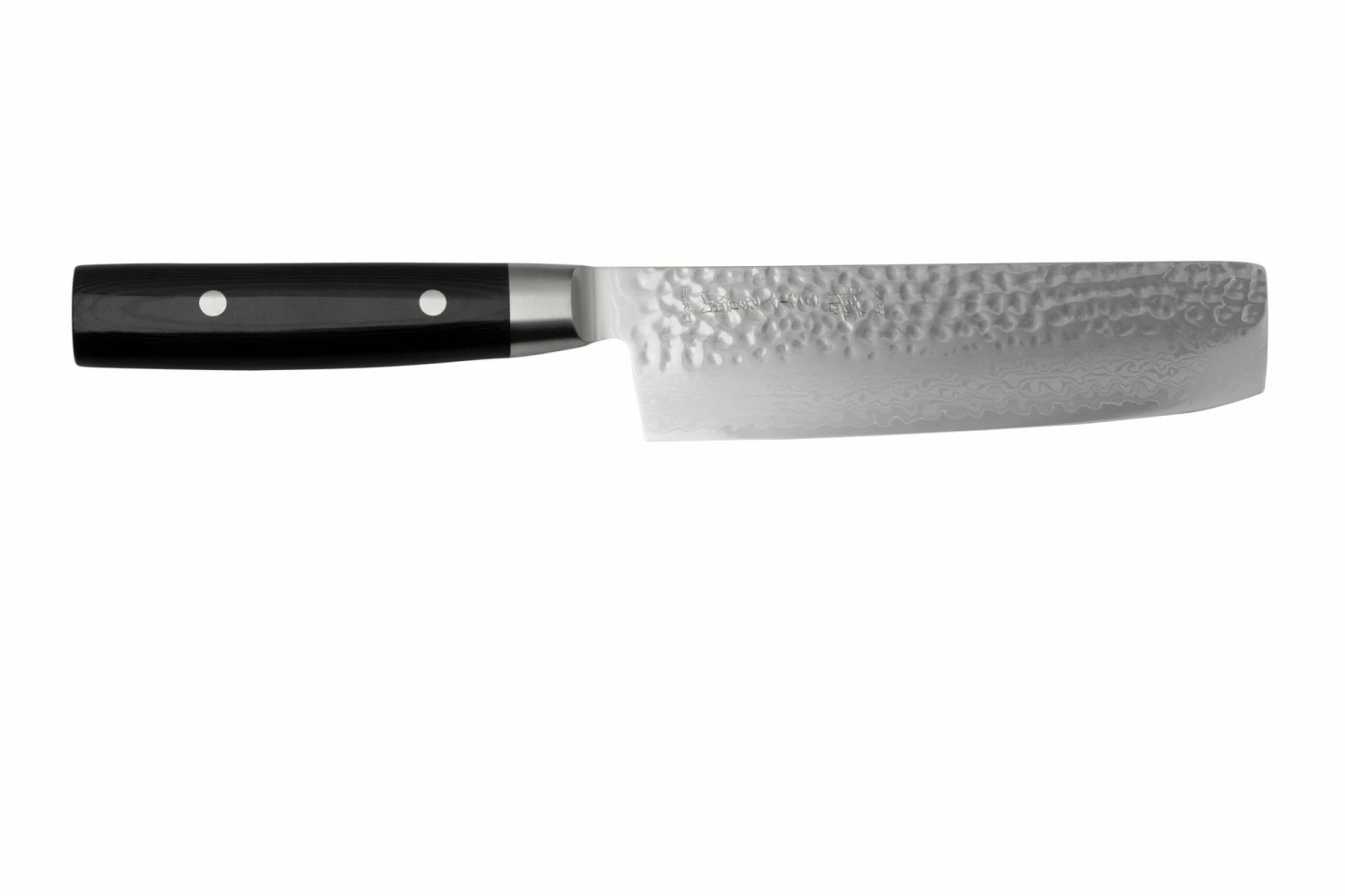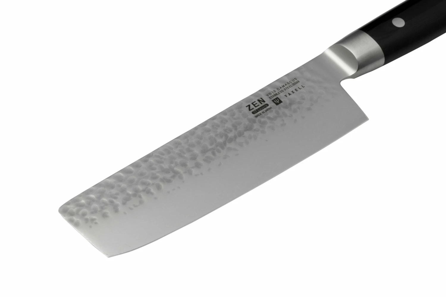 El Yaxell Zen nakiri es un elegante cuchillo japonés para verduras. El nakiri se encuentra en casi todas las cocinas japonesas. La hoja alta y cuadrada es ideal para cortar rápidamente verduras, frutas y hierbas. La hoja alta te permite guiar la hoja con seguridad a lo largo de tus nudillos mientras cortas. Es, sin duda, el cuchillo que necesitas para cortar zanahorias, pepinos, coles y cualquier otro tipo de vegetales muy finos.