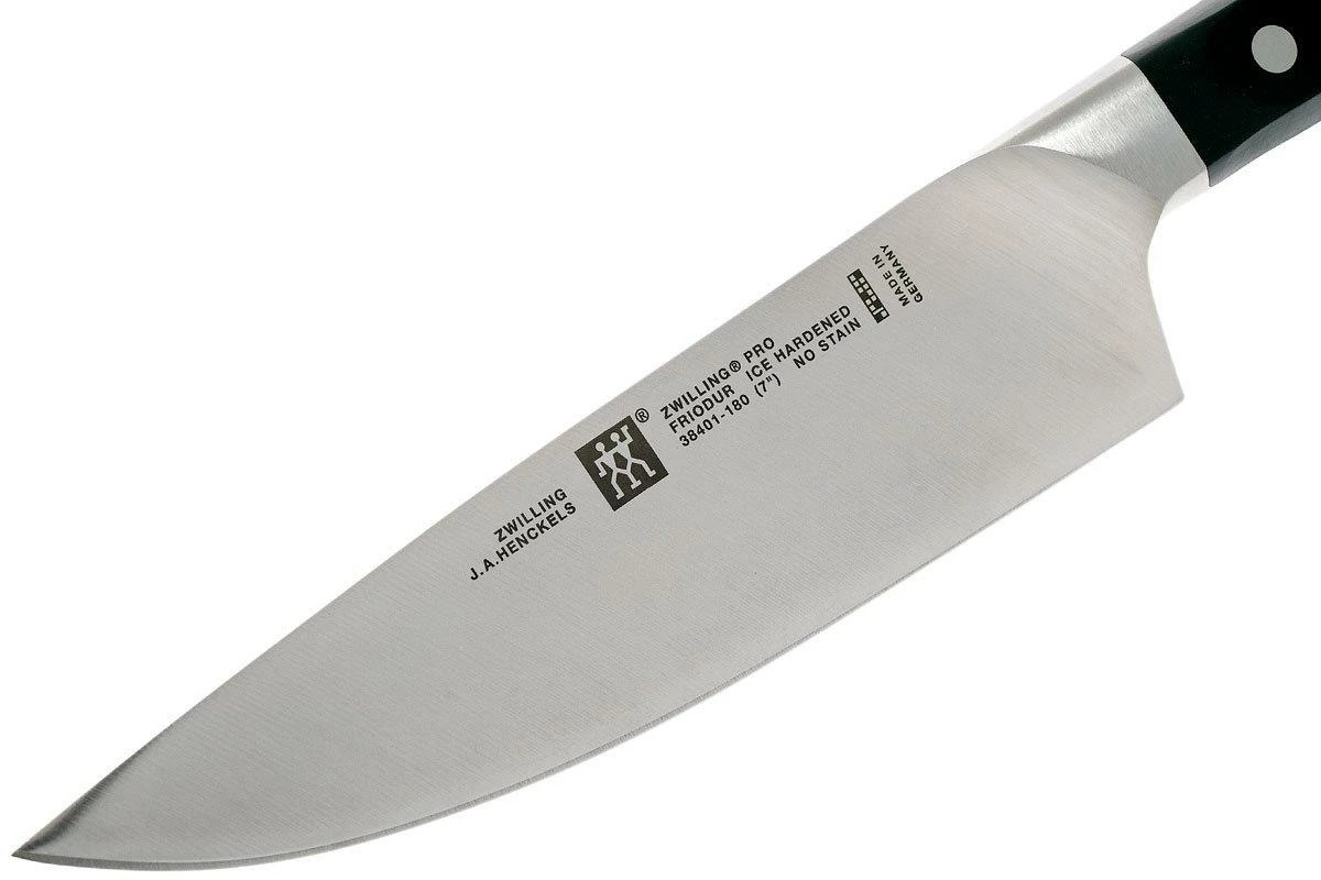 El cuchillo de chef Zwilling Pro de 18 cm está mejorado con una hoja ancha y sólida. Un “todoterreno” para el chef profesional y el aficionado. El cuchillo perfecto para cortar verduras y picar finamente hierbas. Los cuchillos de chef tienen una hoja de entre 4 y 5 cm de ancho para asegurarse de poder apoyar los nudillos de la mano que sostiene los ingredientes contra el lateral de la hoja. De esta forma, se trabaja rápido y con seguridad.